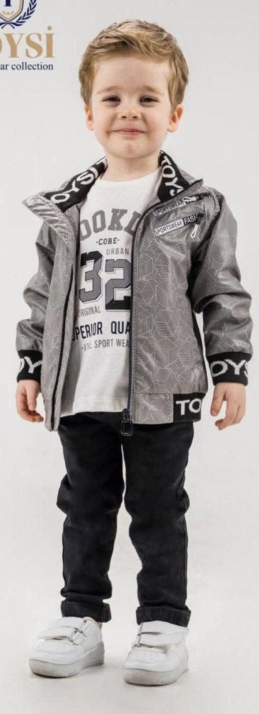 3-częściowy komplet chłopięcy – wiosenna kurtka, czarne jeansy i bluzka z długim rękawem