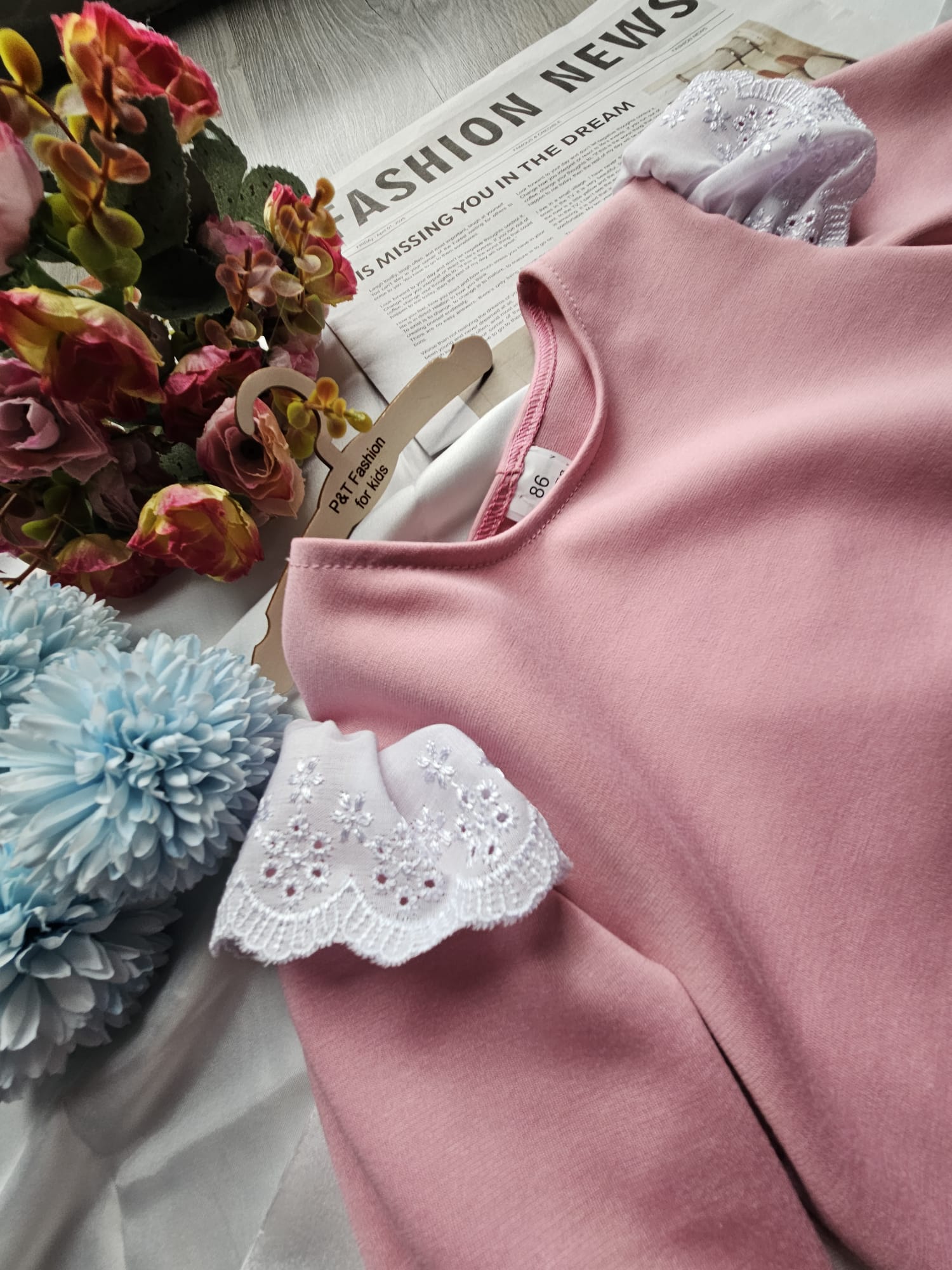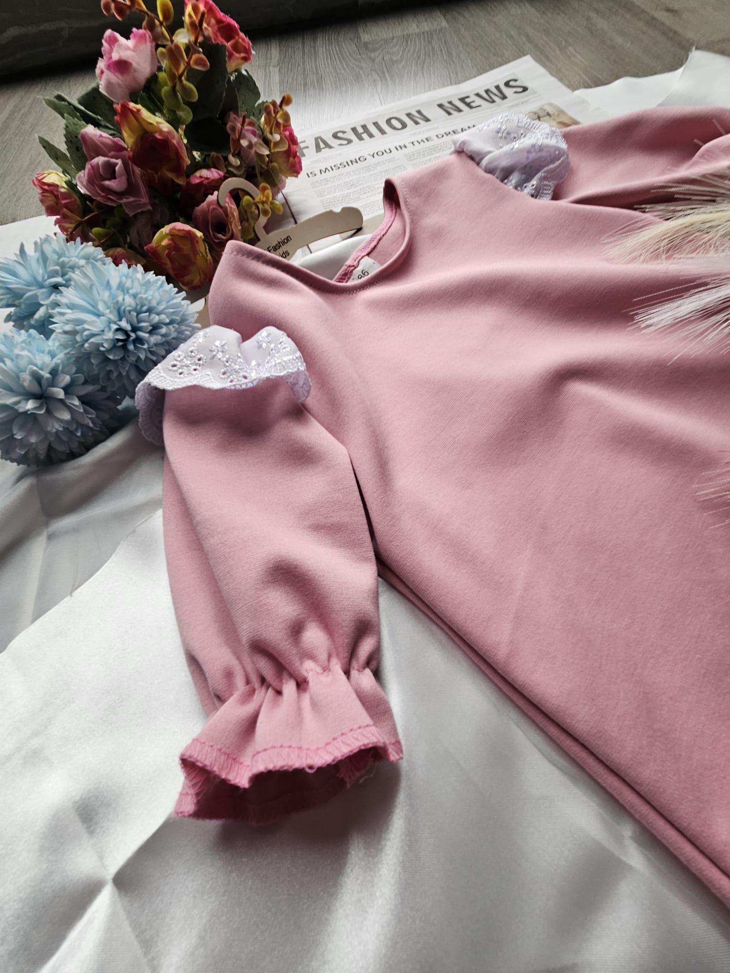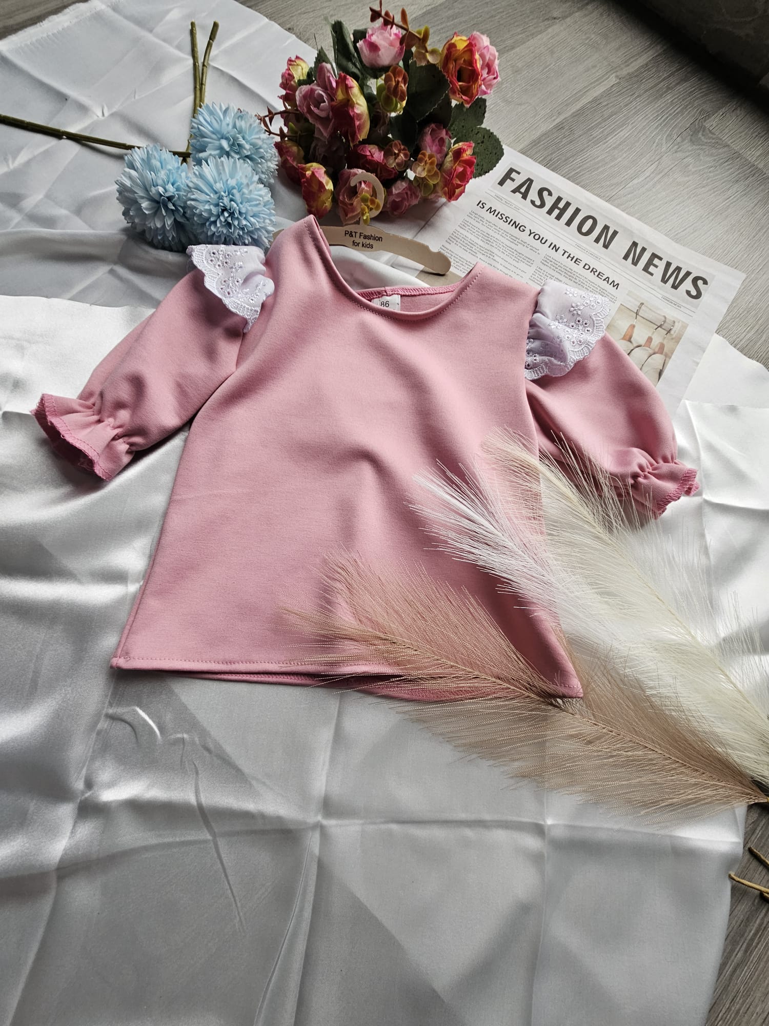 Lekka i wygodna bluzka na krótki rękaw z ozdobnymi falbankami na ramionach, które dodają jej dziewczęcego uroku. Wykonana z miękkiej bawełny, zapewnia komfort przez cały dzień. Uniwersalny fason sprawia, że świetnie pasuje do spódniczek, spodenek i jeansów – idealna do każdej stylizacji! ✨👧🏻