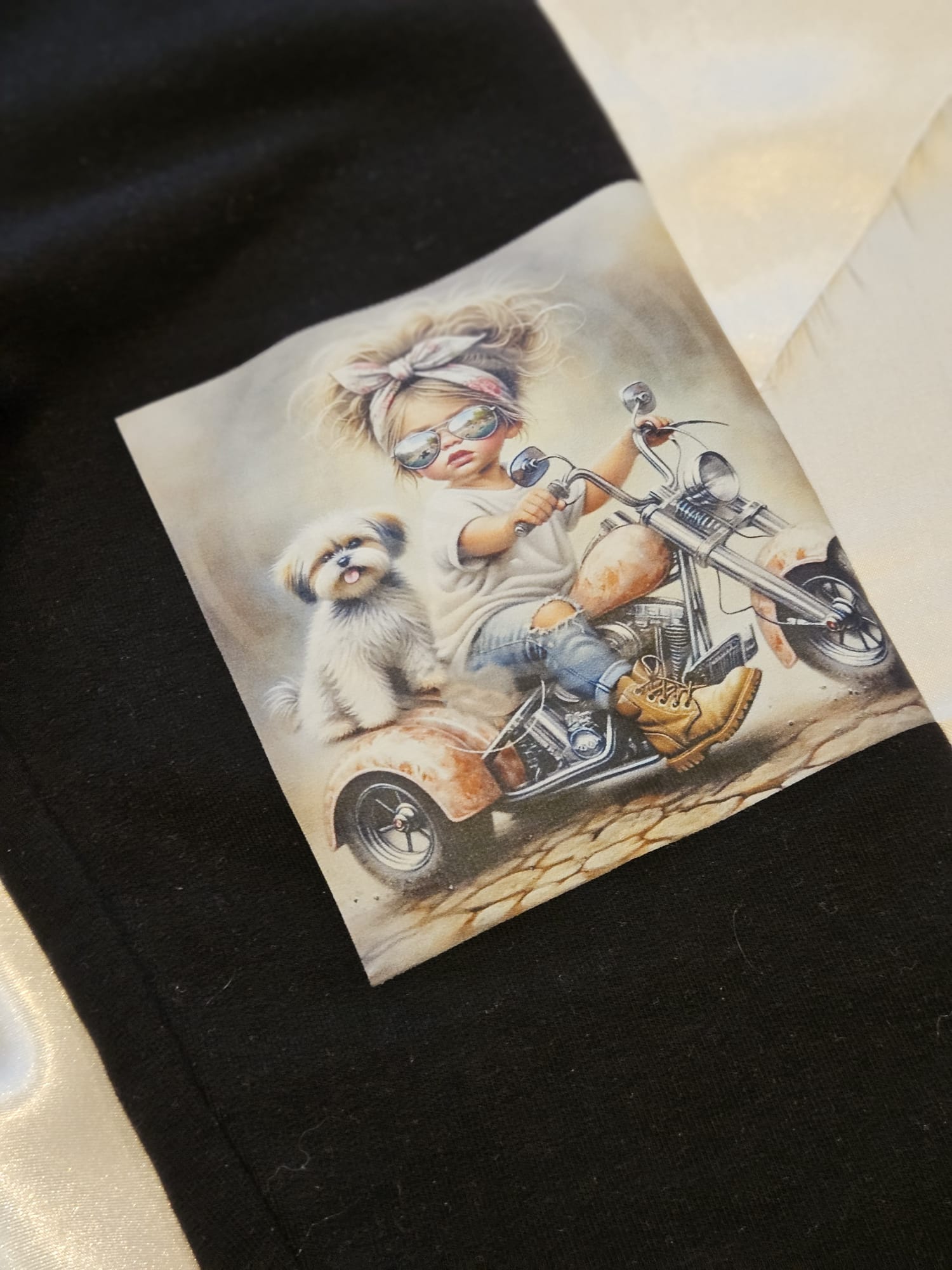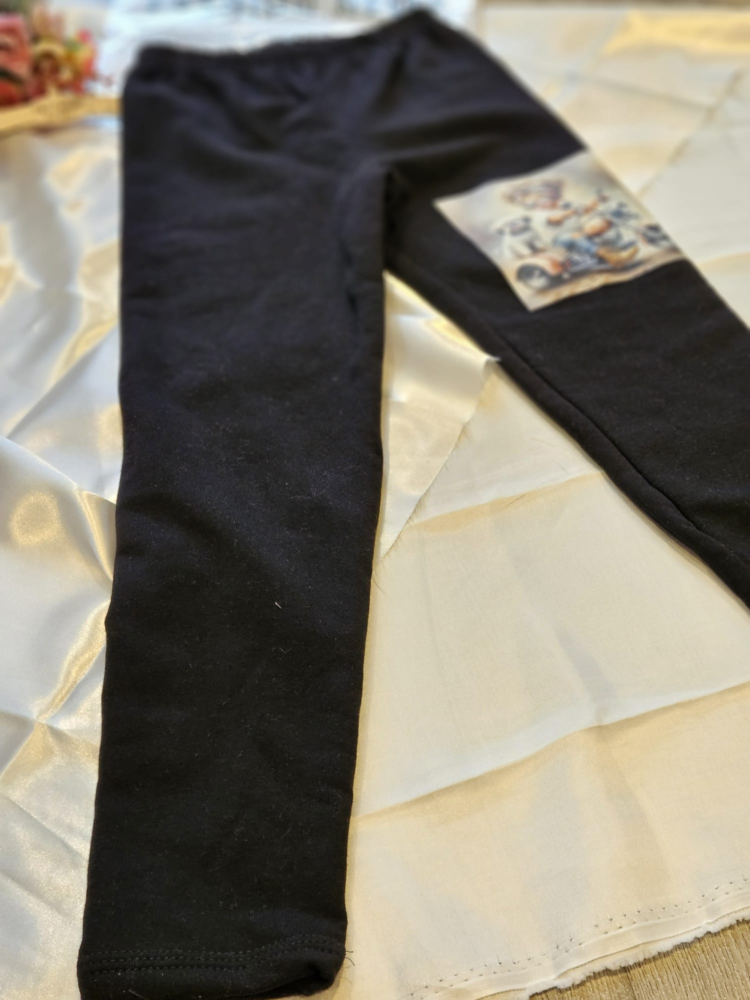 Stylowe legginsy dziewczęce w klasycznym czarnym kolorze, ozdobione piękną aplikacją lali. Model posiada lekkie ocieplenie od środka, dzięki czemu zapewnia komfort i ciepło w chłodniejsze dni.