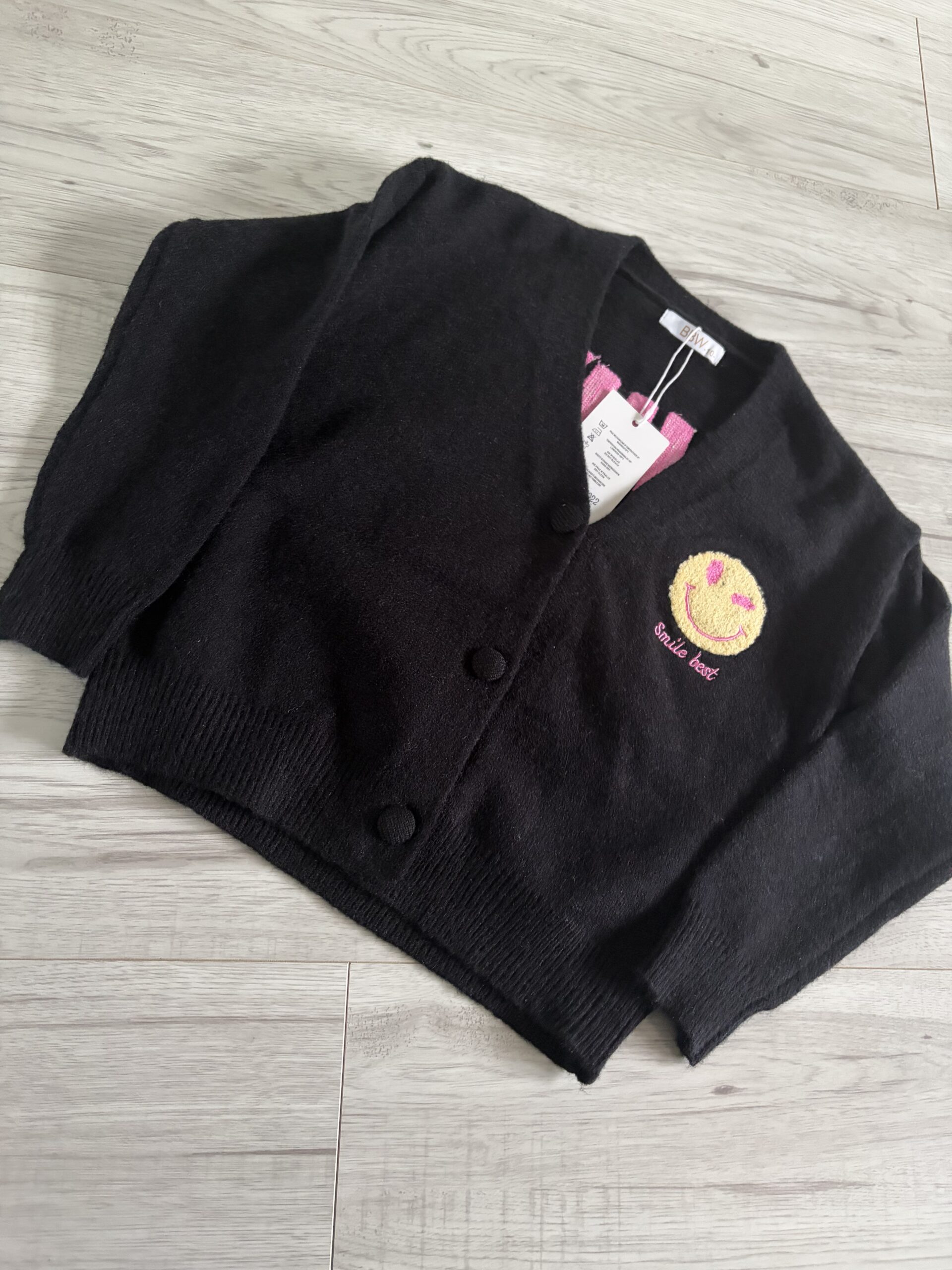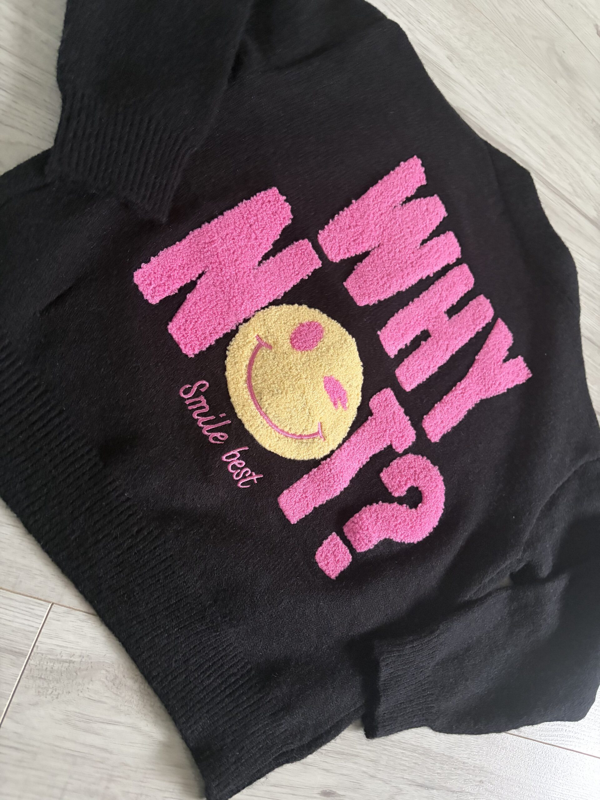 Modny sweter dziewczęcy w klasycznym czarnym kolorze.
