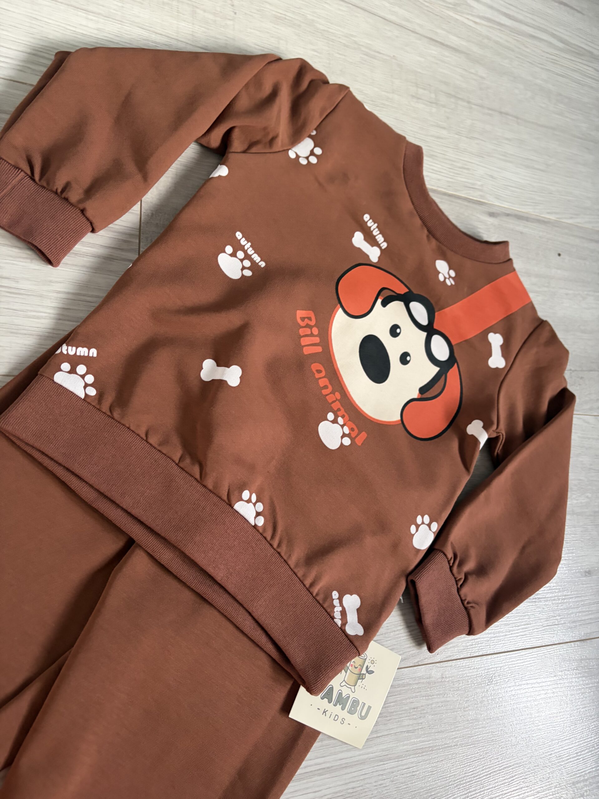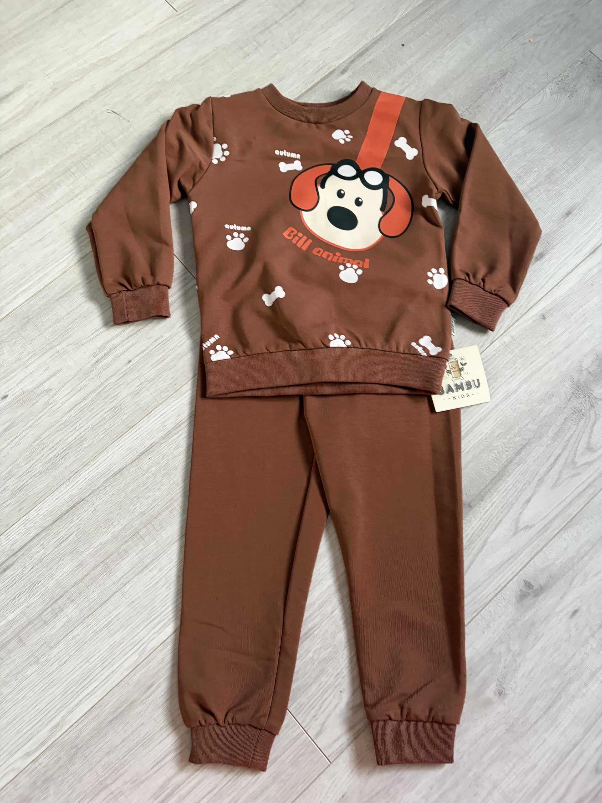 Dres dla chłopca w kolorze brązowym , ze słodkim pieskiem . Super sprawdzi sie na spacery i do zabawy .