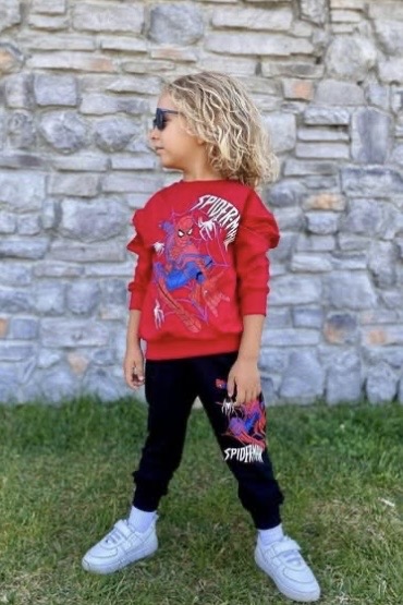 Zestaw składa się z czerwonej bluzy z nadrukiem oraz czarnych spodni. Wygodny krój zapewnia swobodę ruchów, dzięki czemu świetnie sprawdzi się w szkole, na spacerze czy podczas zabawy.