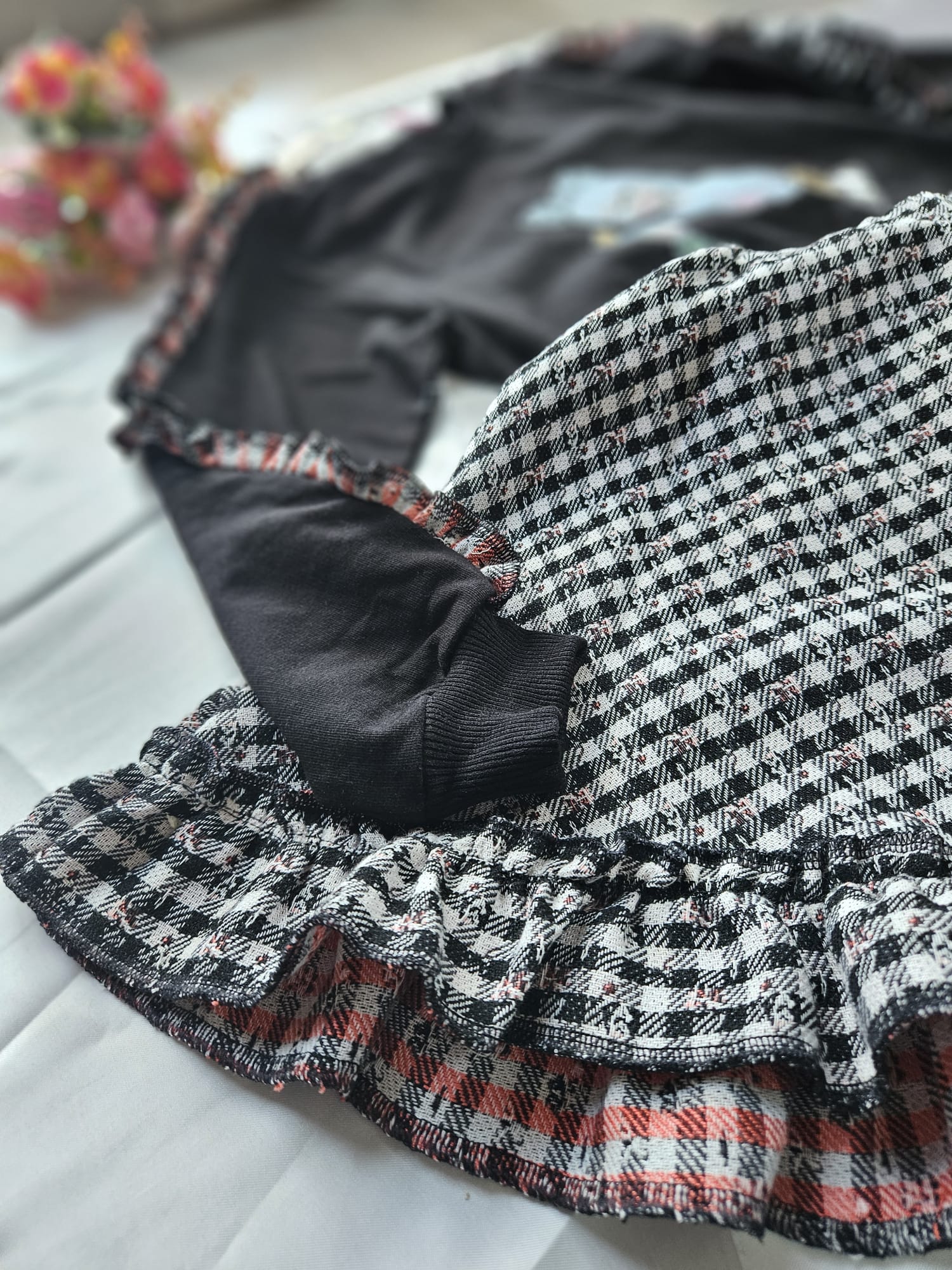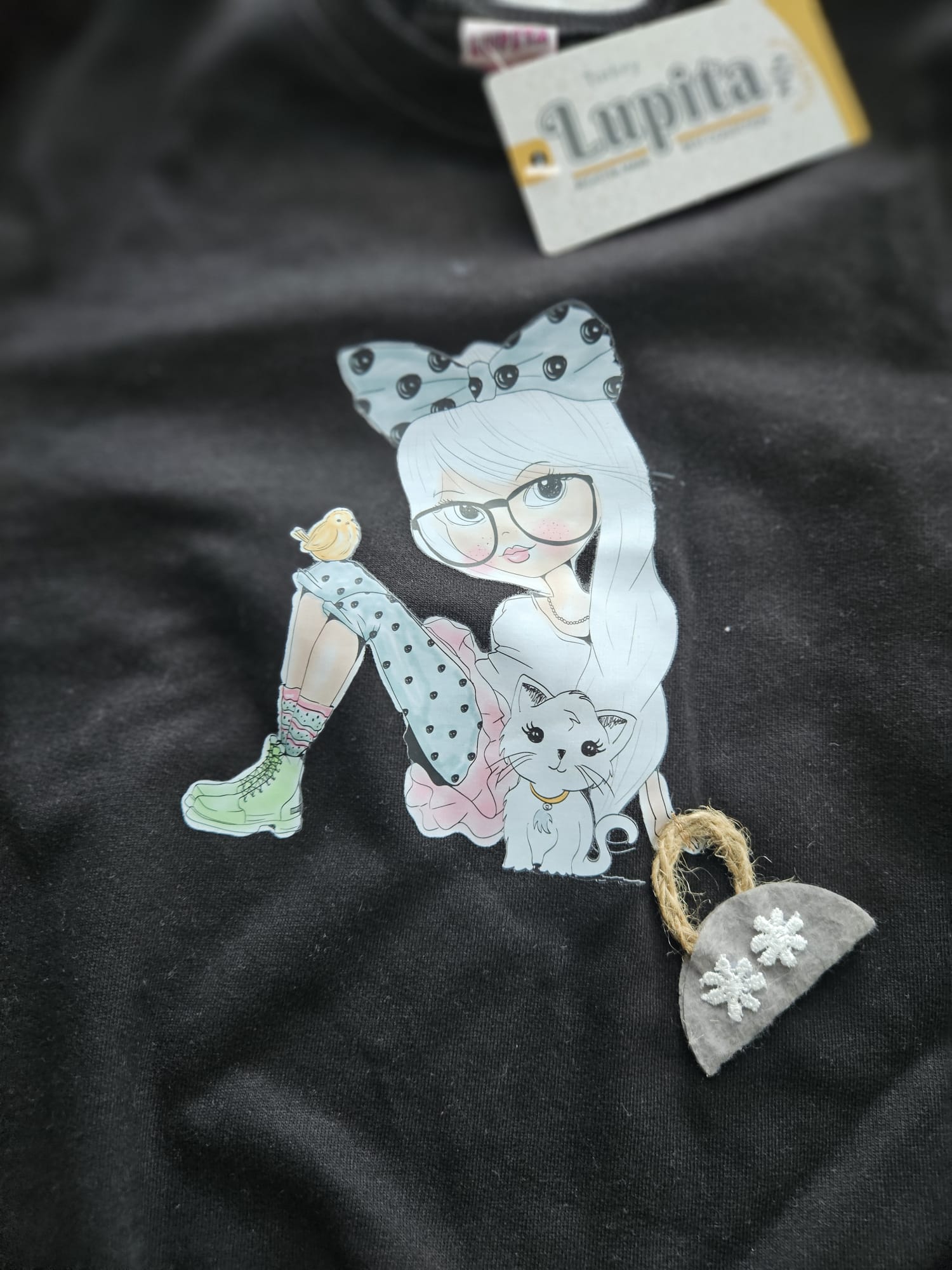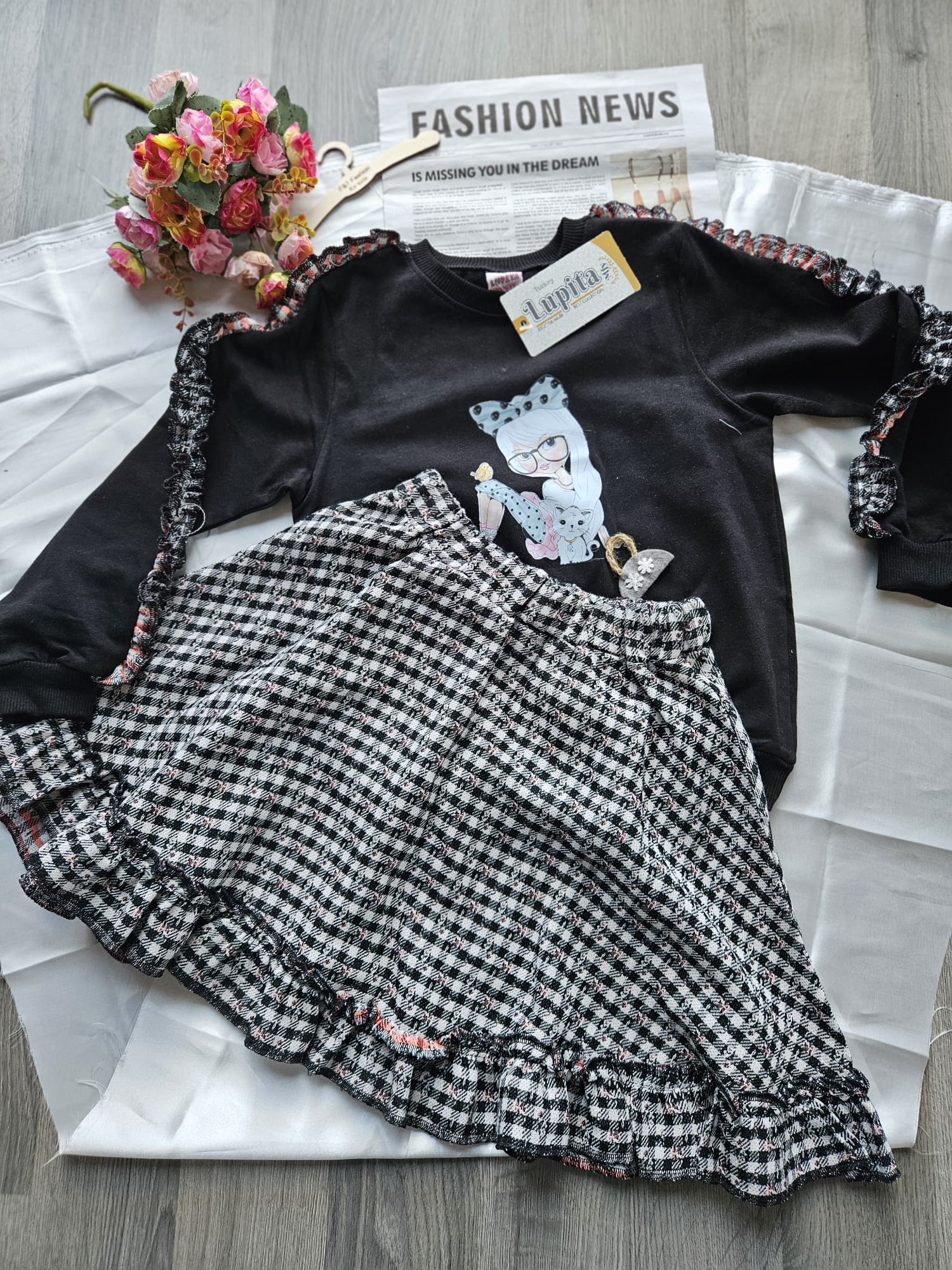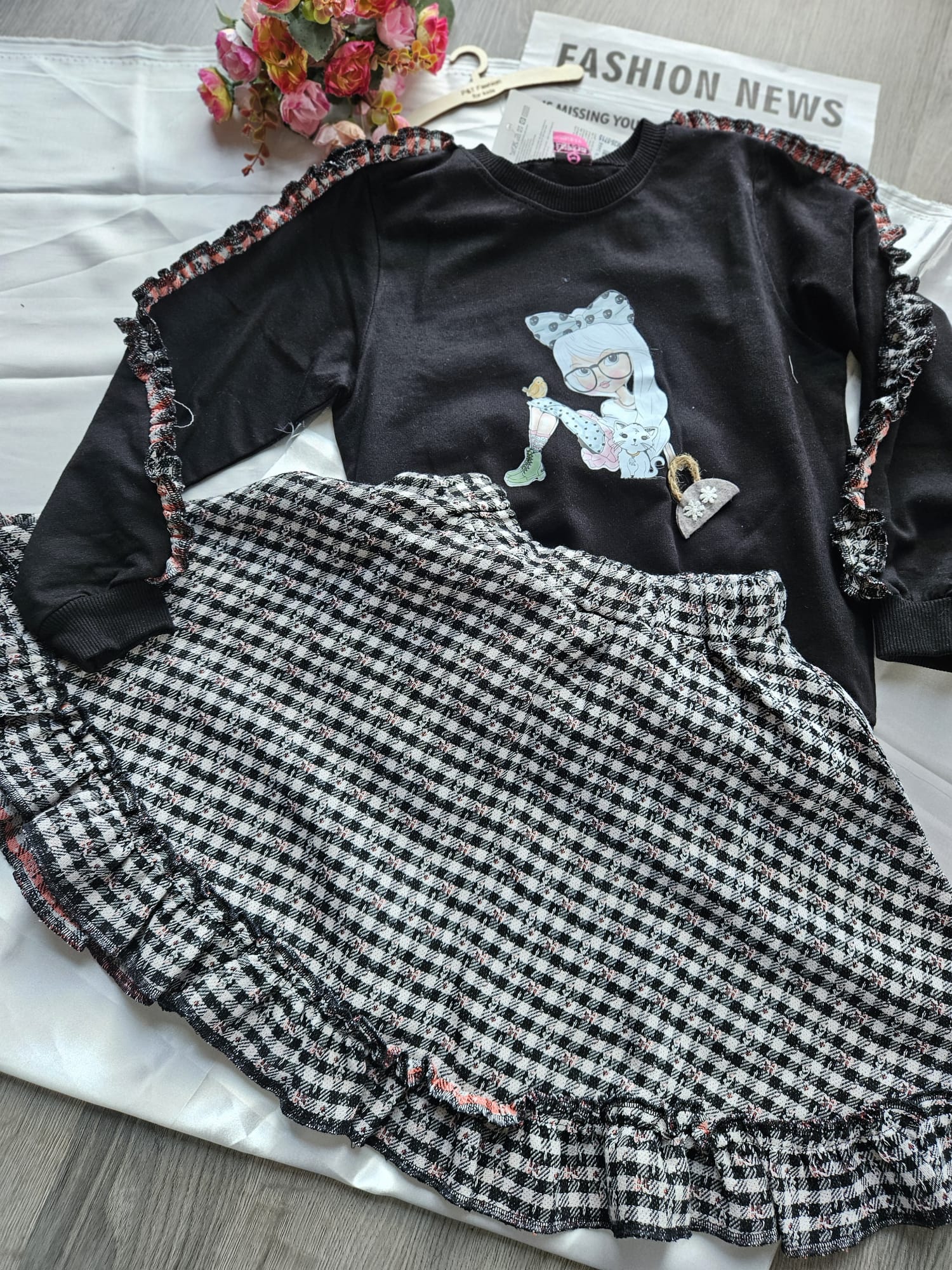Prześliczny komplet bluzy i spódniczki z aplikacja lali na bluzie.