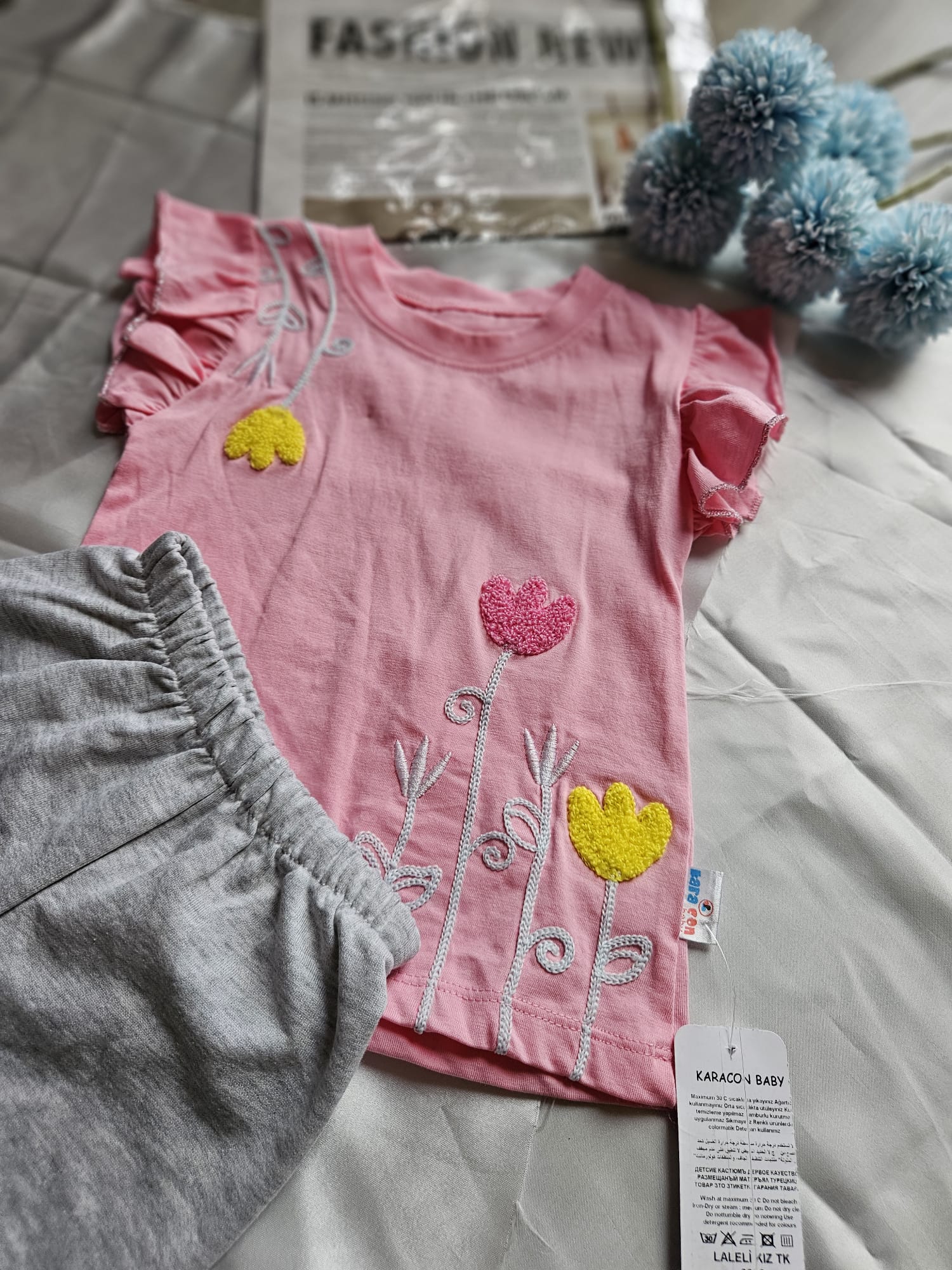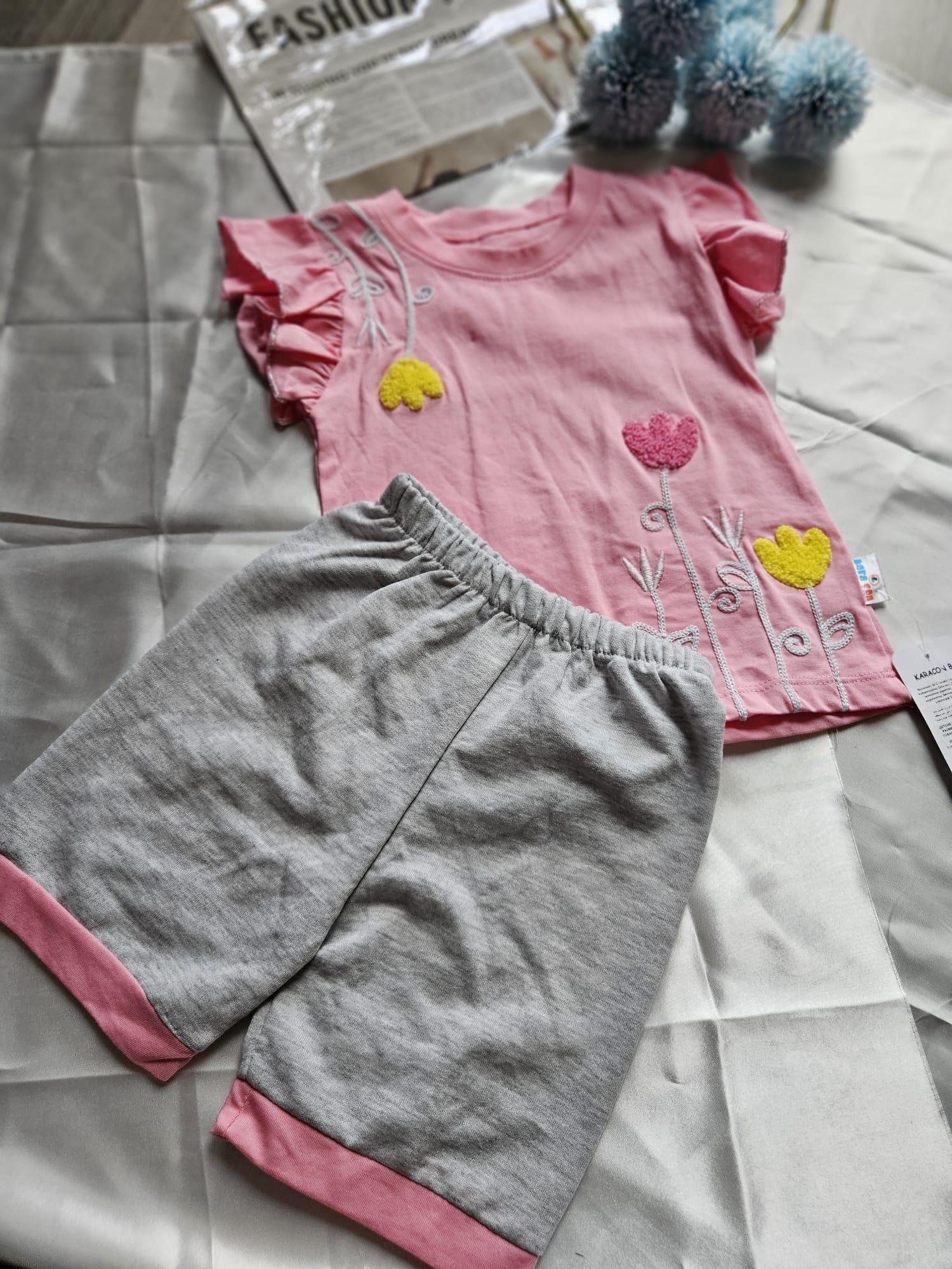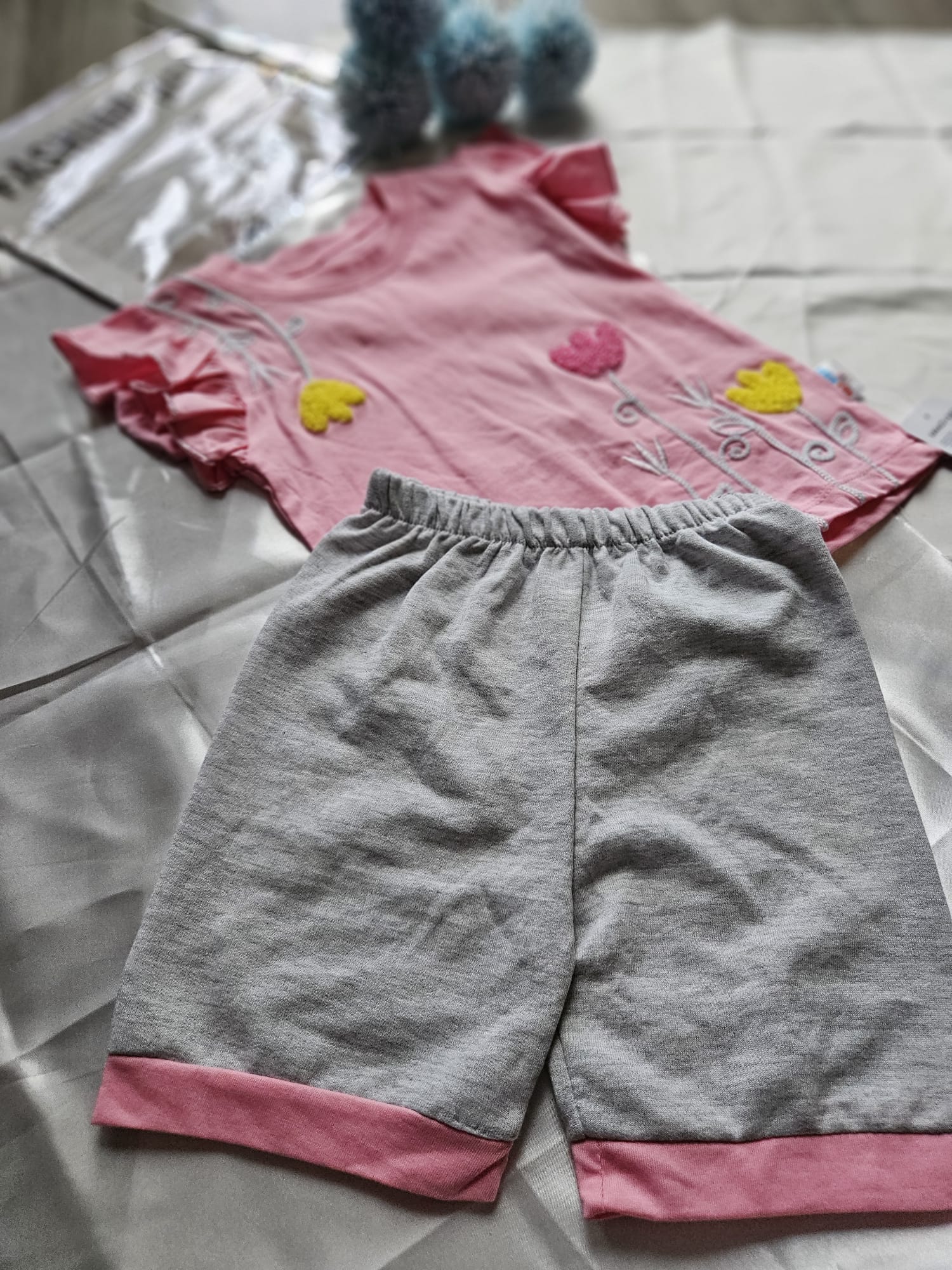Wygodny komplet dresowy dla dziewczynki: koszulka i spodenki, idealny na aktywne dni i codzienne przygody. Miękki, oddychający materiał zapewnia komfort noszenia, a sportowy, modny fason sprawia, że zestaw świetnie sprawdzi się zarówno w domu, jak i na świeżym powietrzu. Styl i wygoda w jednym!