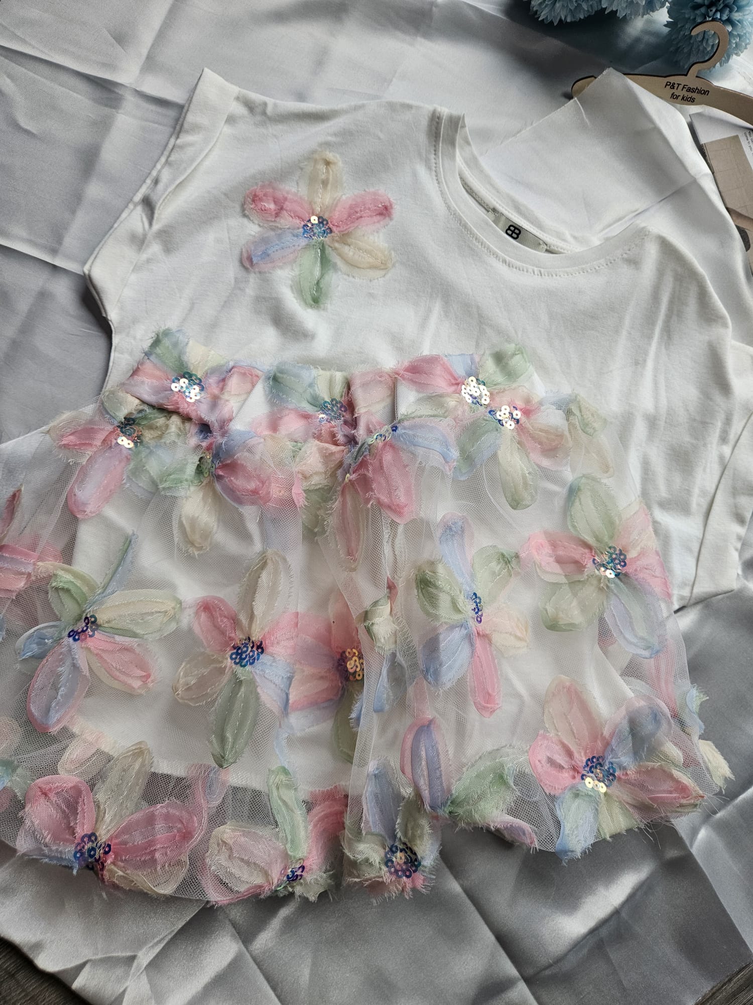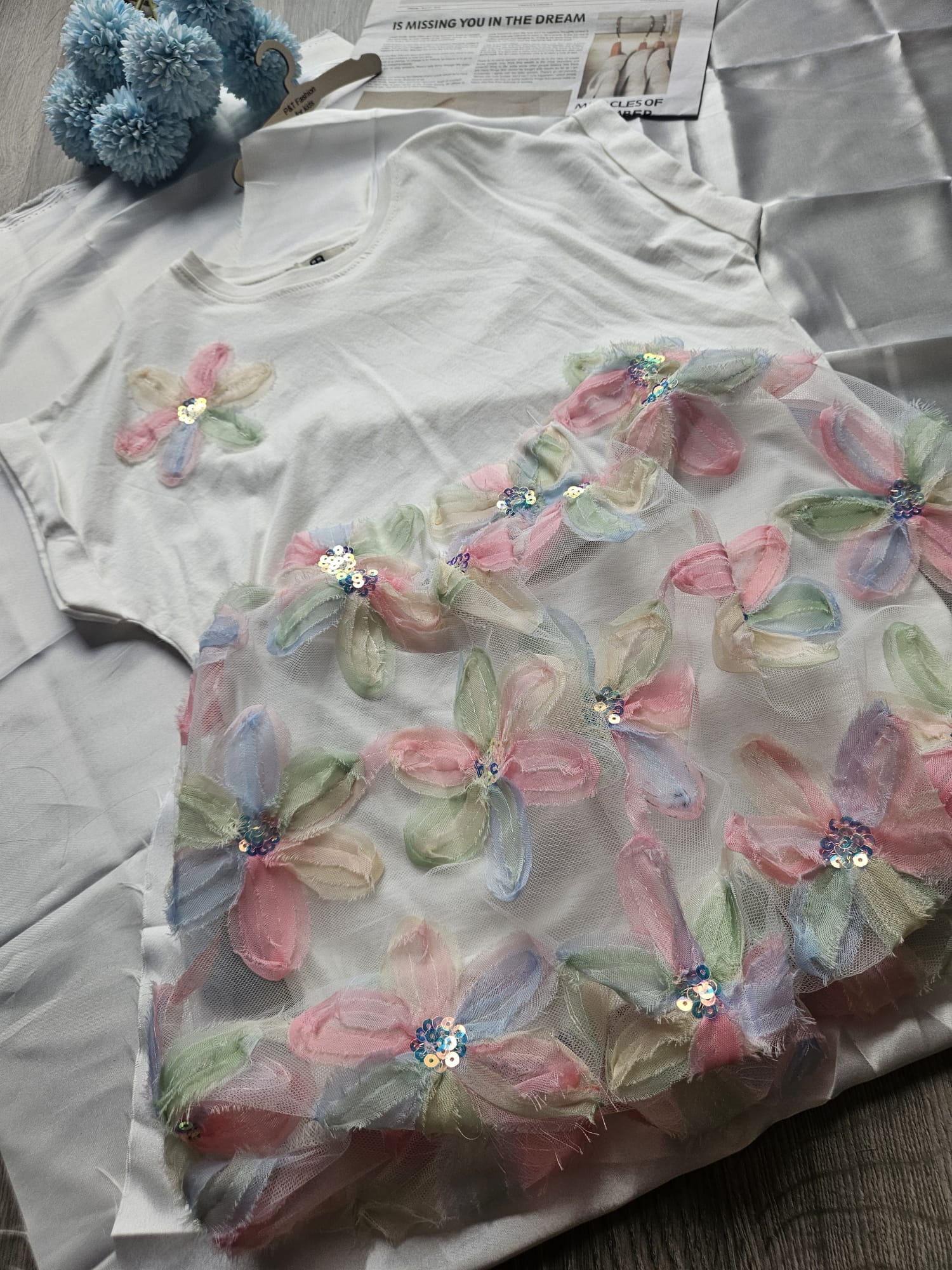 🌸 Komplet koszulka + spódniczka w kwiatki – idealny na małe i duże przygody! 🌸