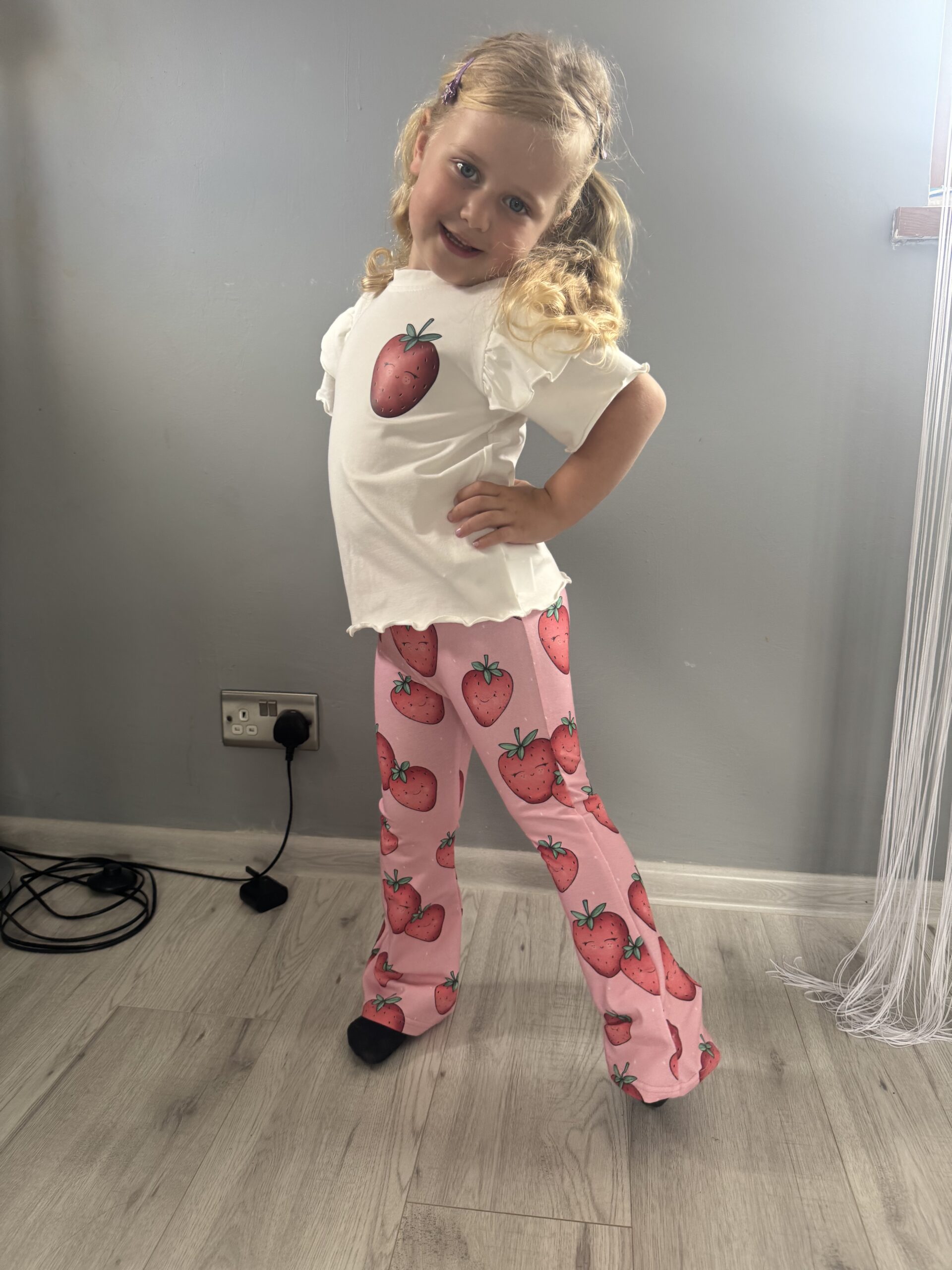 Śmietankowa koszulka z truskawką oraz dzwony w truskawki
