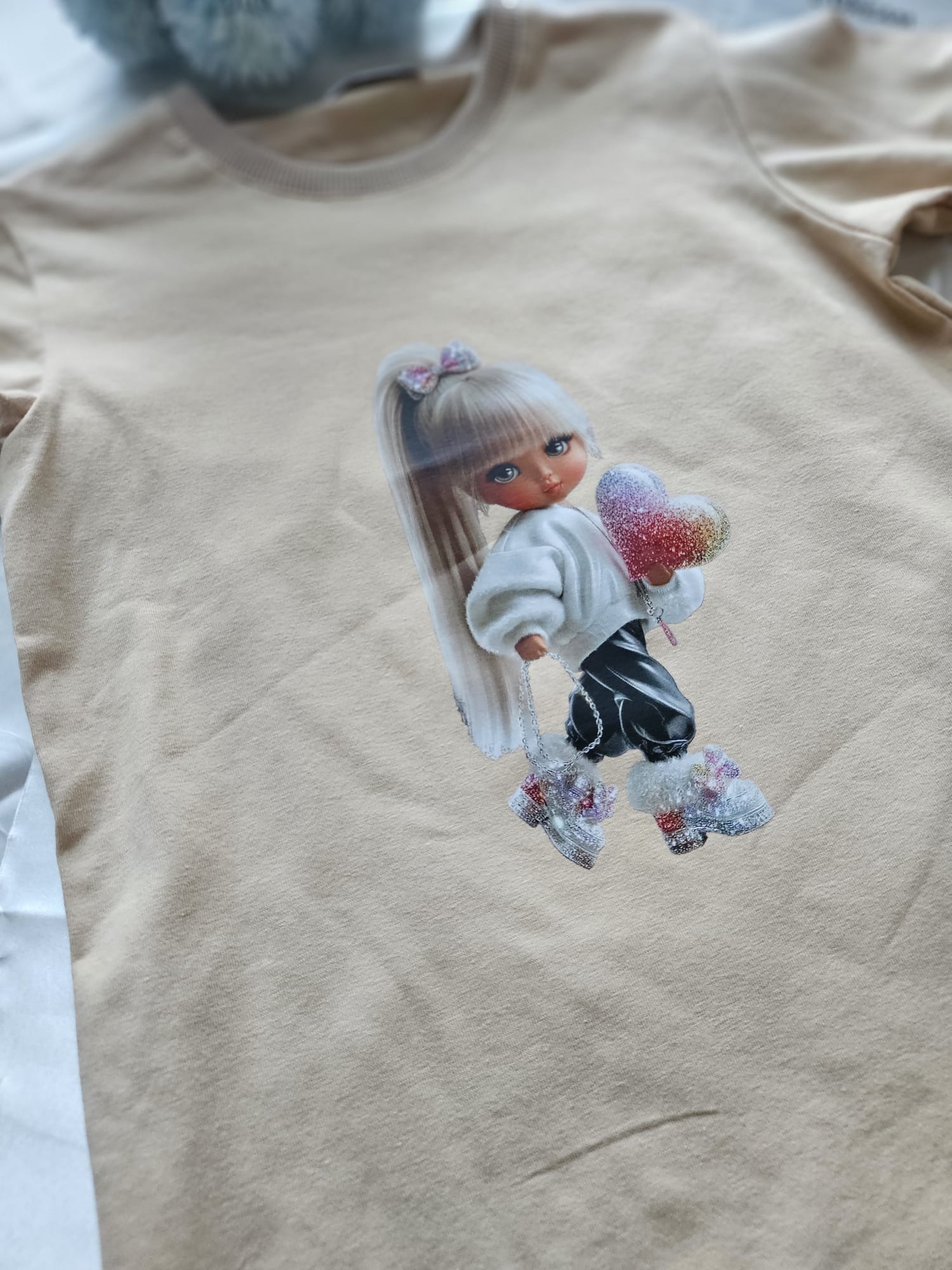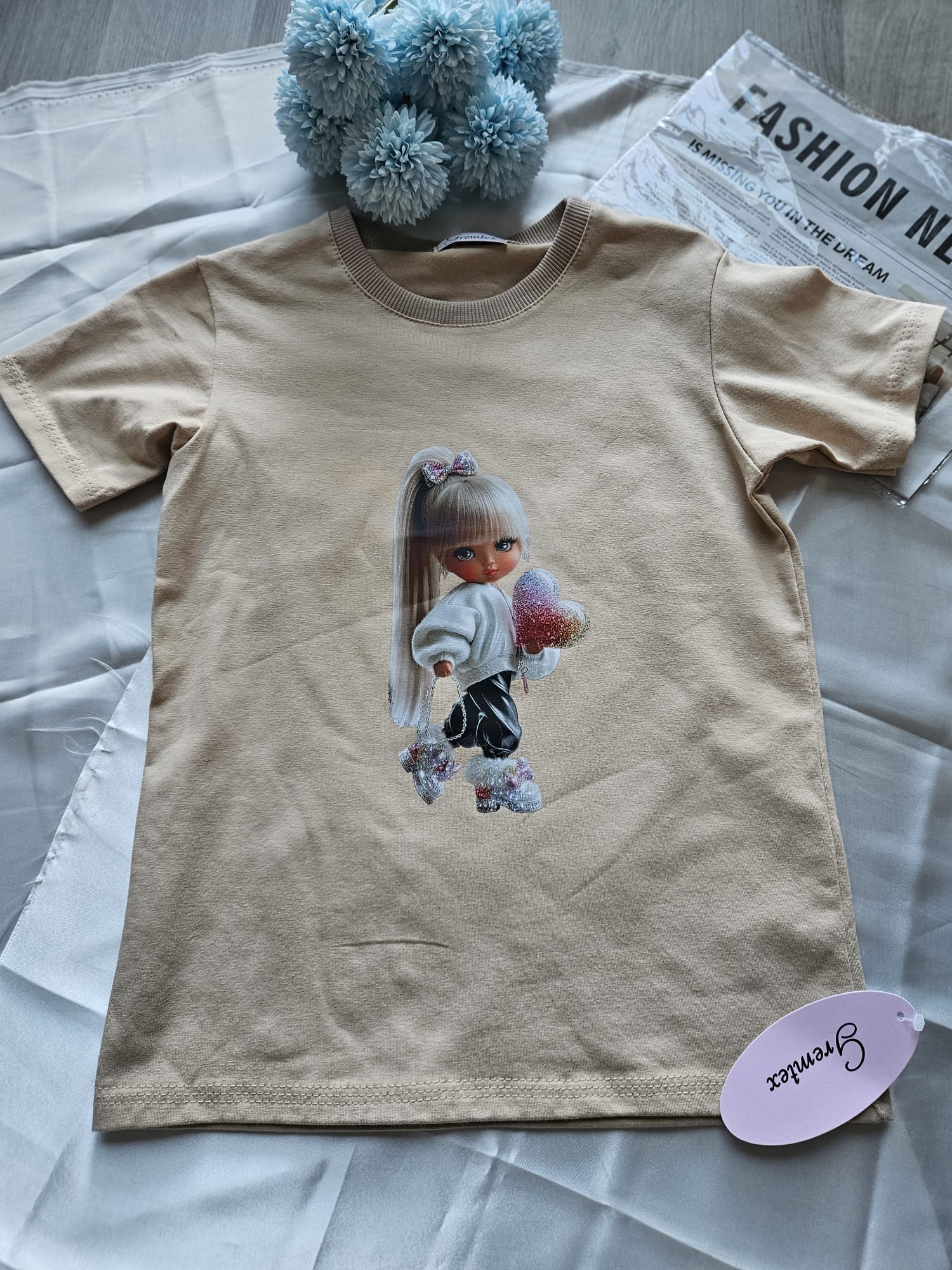 Bawełniana koszulka z piękną lalką na przodzie to idealny wybór na co dzień. Miękka, lekka i pełna uroku – stworzona do zabawy i małych przygód! 🎀