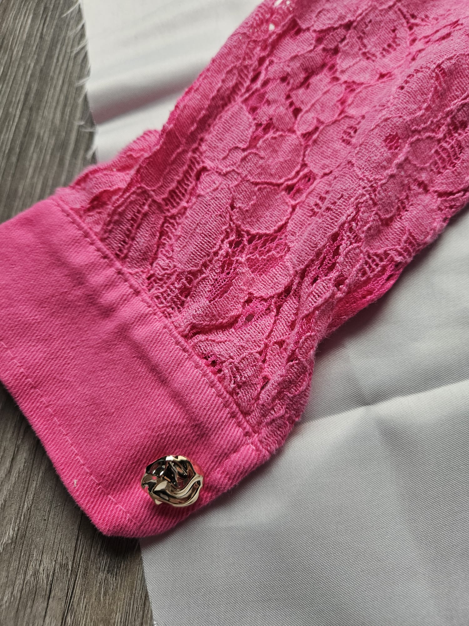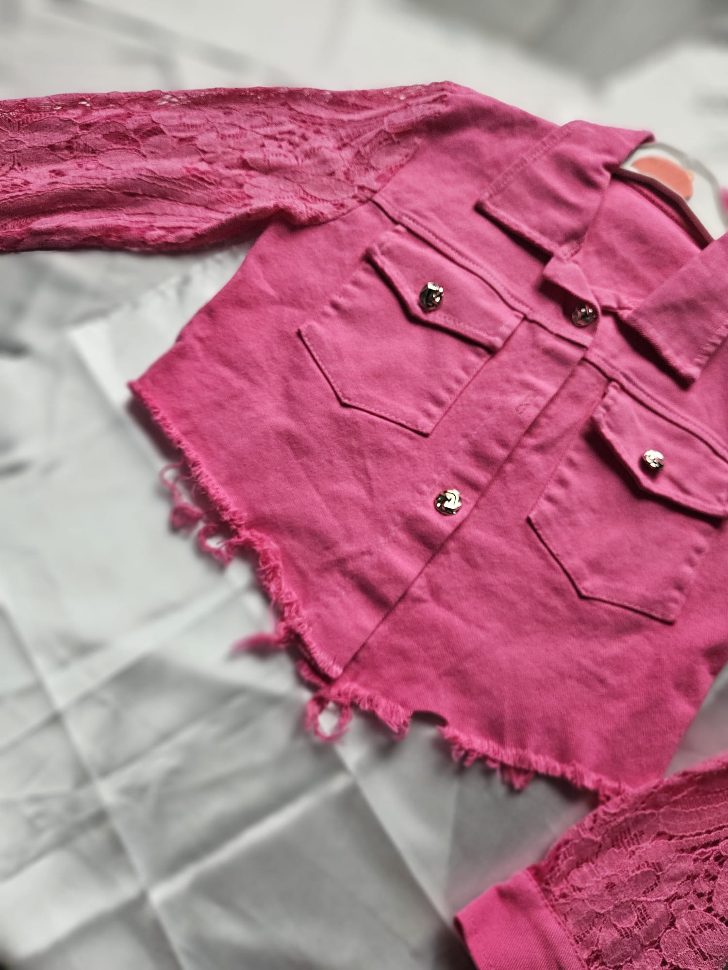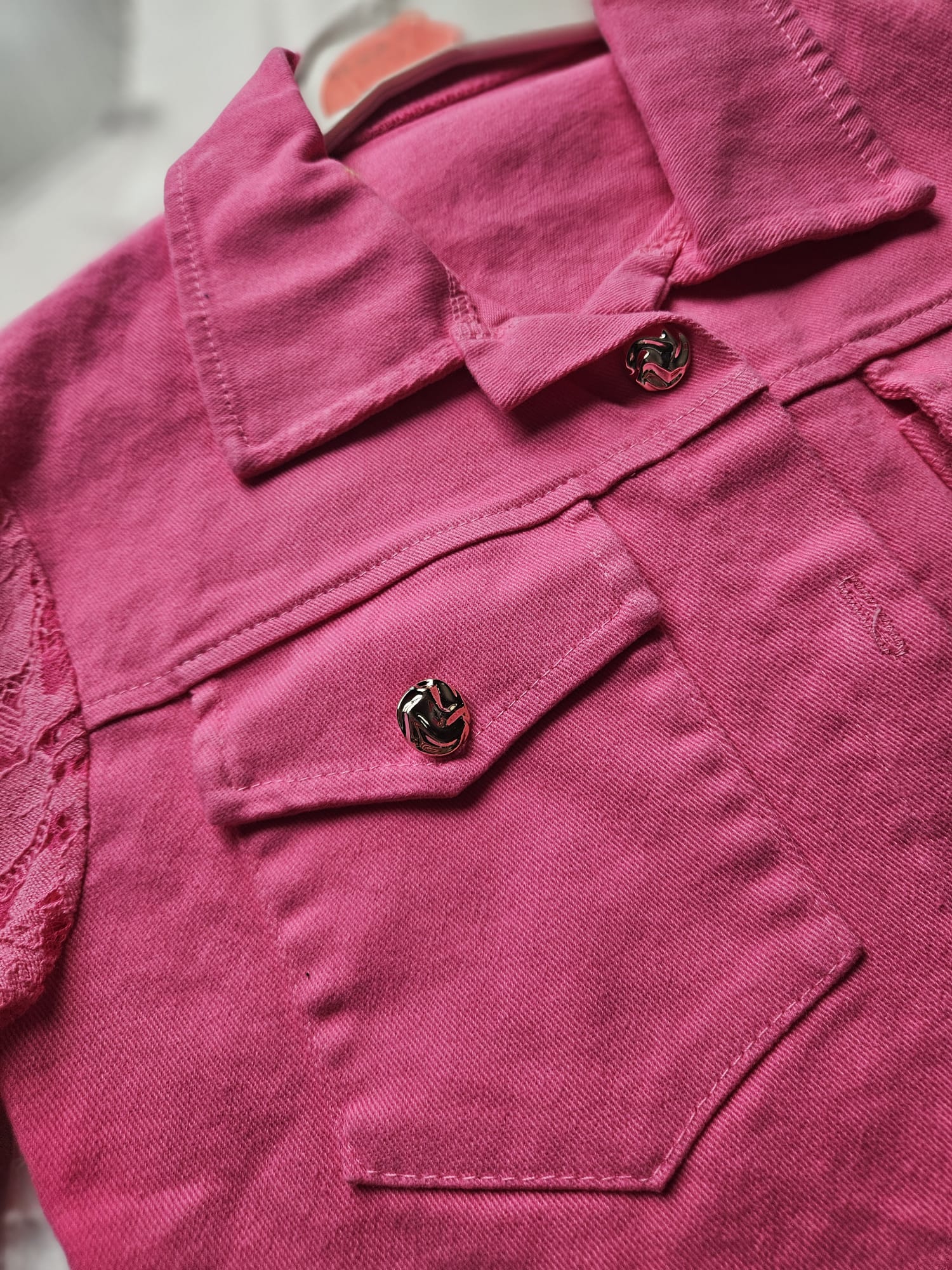 Jeansowa kurtka ozdobiona delikatną koronką na rękawach to stylowe połączenie wygody i elegancji. Idealna na co dzień i wyjątkowe okazje – doda uroku każdej stylizacji!