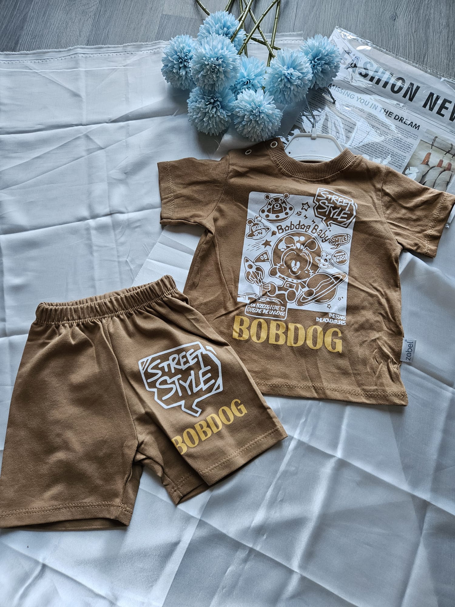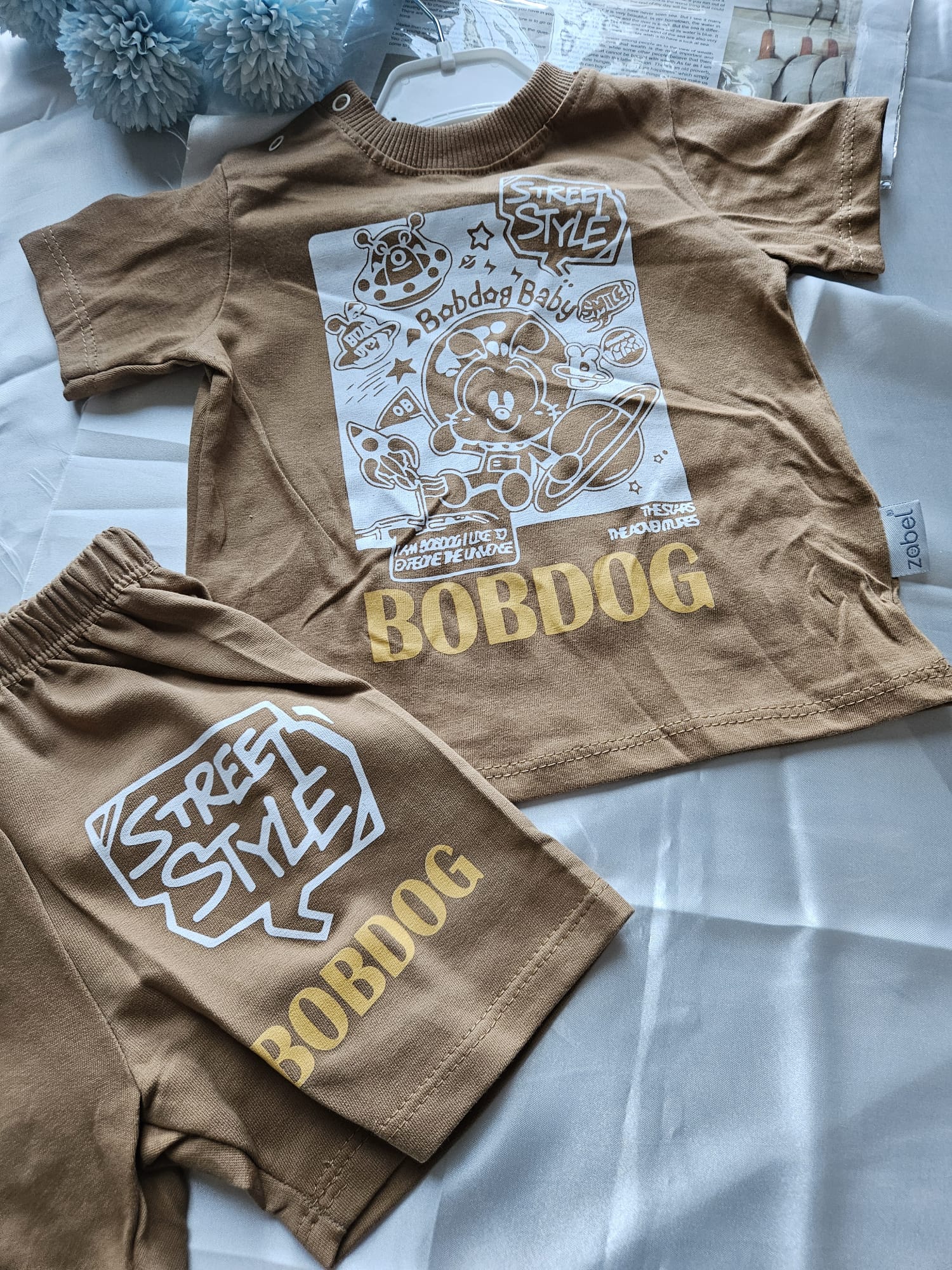 Letni komplet dla chłopca w eleganckim, beżowym kolorze! Lekka koszulka i wygodne spodenki zapewniają swobodę ruchów i komfort podczas słonecznych dni pełnych zabawy i przygód.