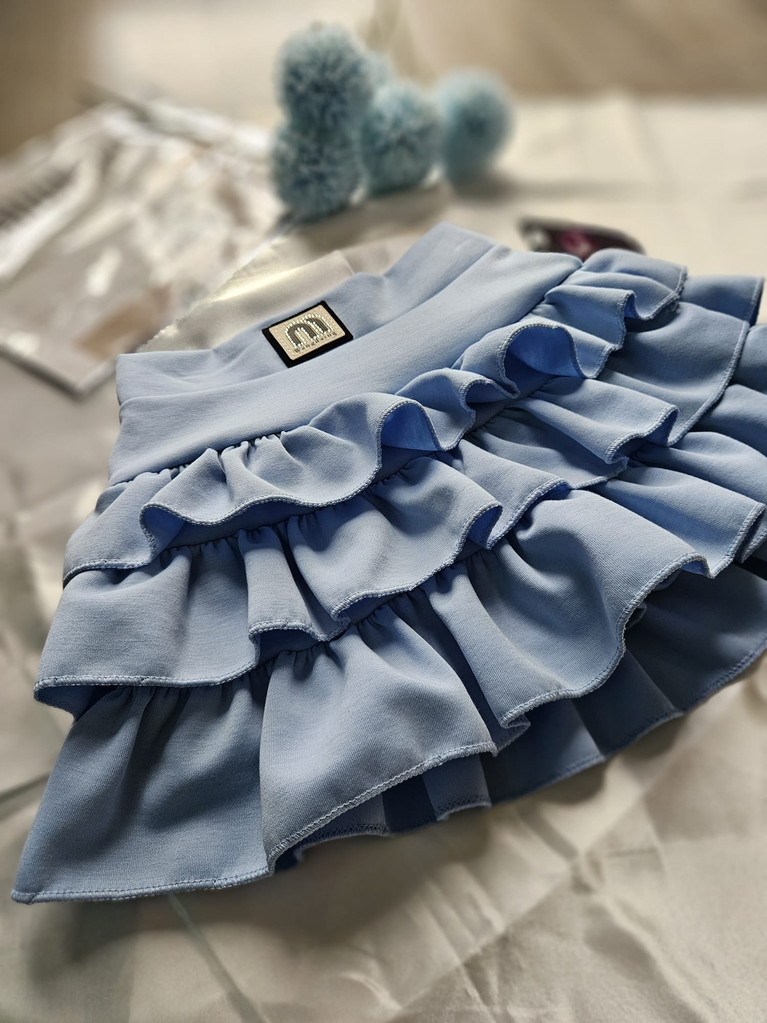 Niebieskie spódniczko-spodenki – połączenie wygody i stylu dla małych odkrywców! Idealne na codzienne zabawy, zapewniają swobodę ruchu i uroczy wygląd.