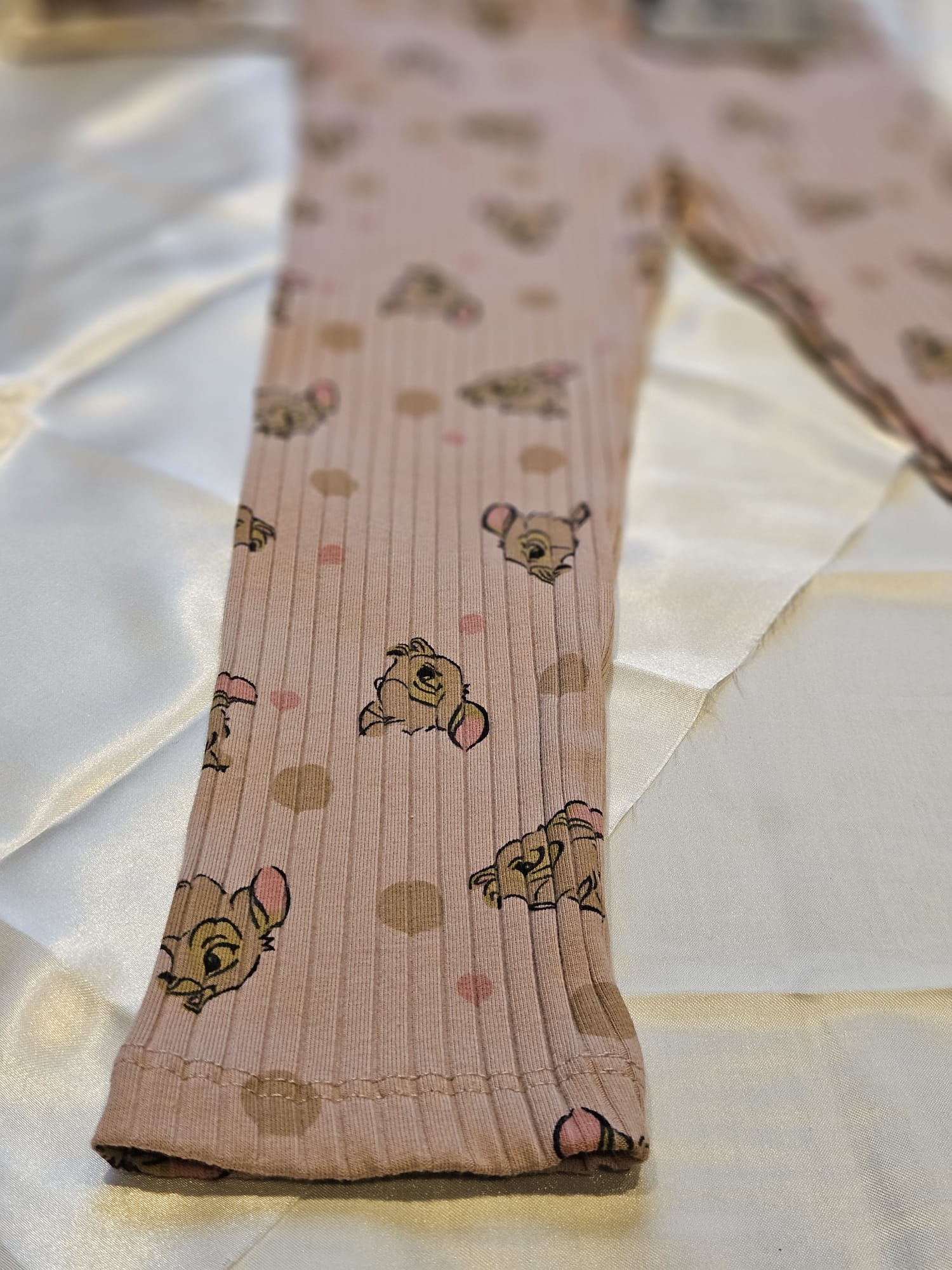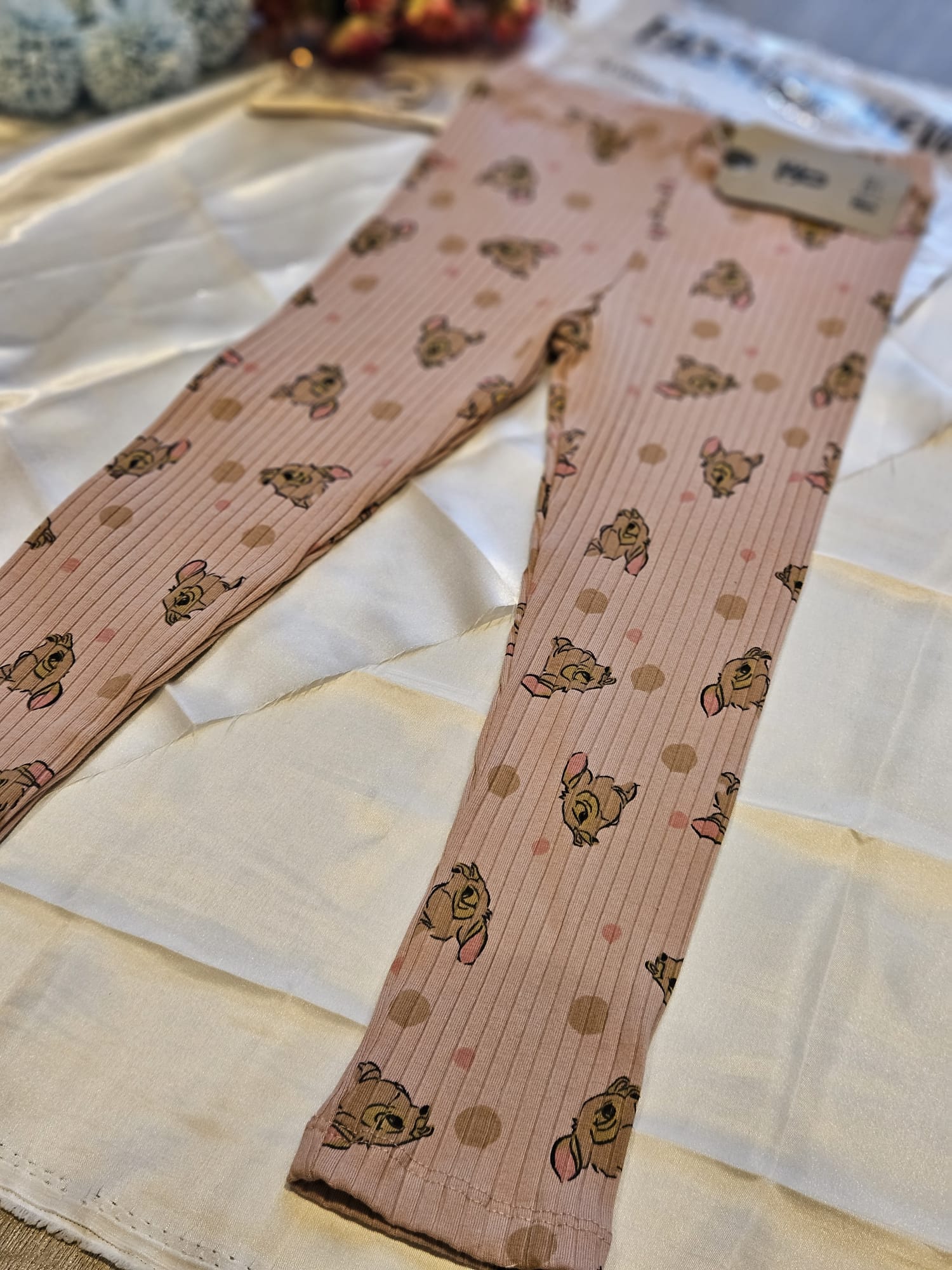 Urocze legginsy dziewczęce wykonane z miękkiej, prążkowanej bawełny. Ozdobione delikatnym wzorem misiów, który nadaje im dziewczęcego i uroczego charakteru.
