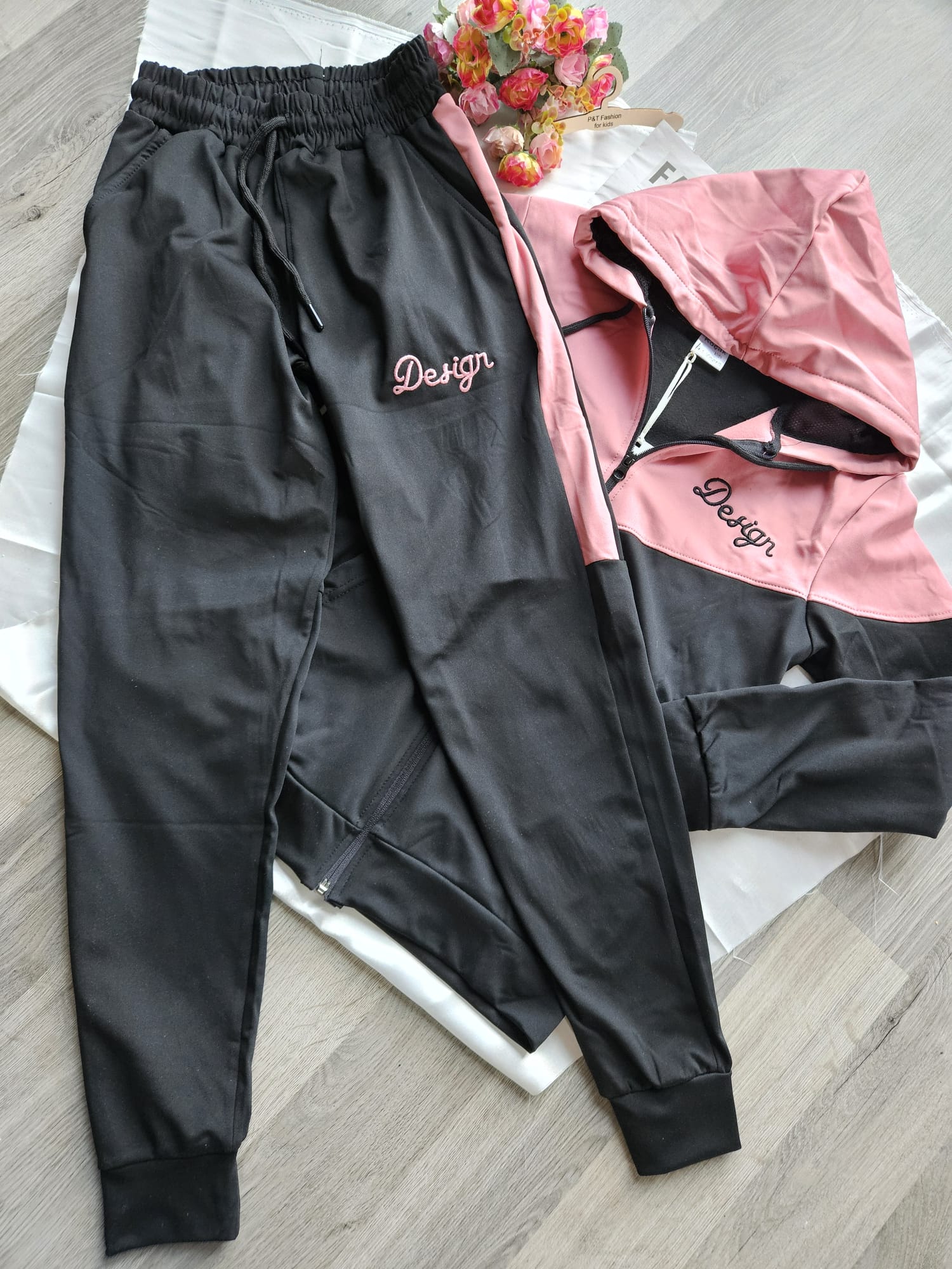 Różowo-czarny komplet dresowy dla dziewczynki