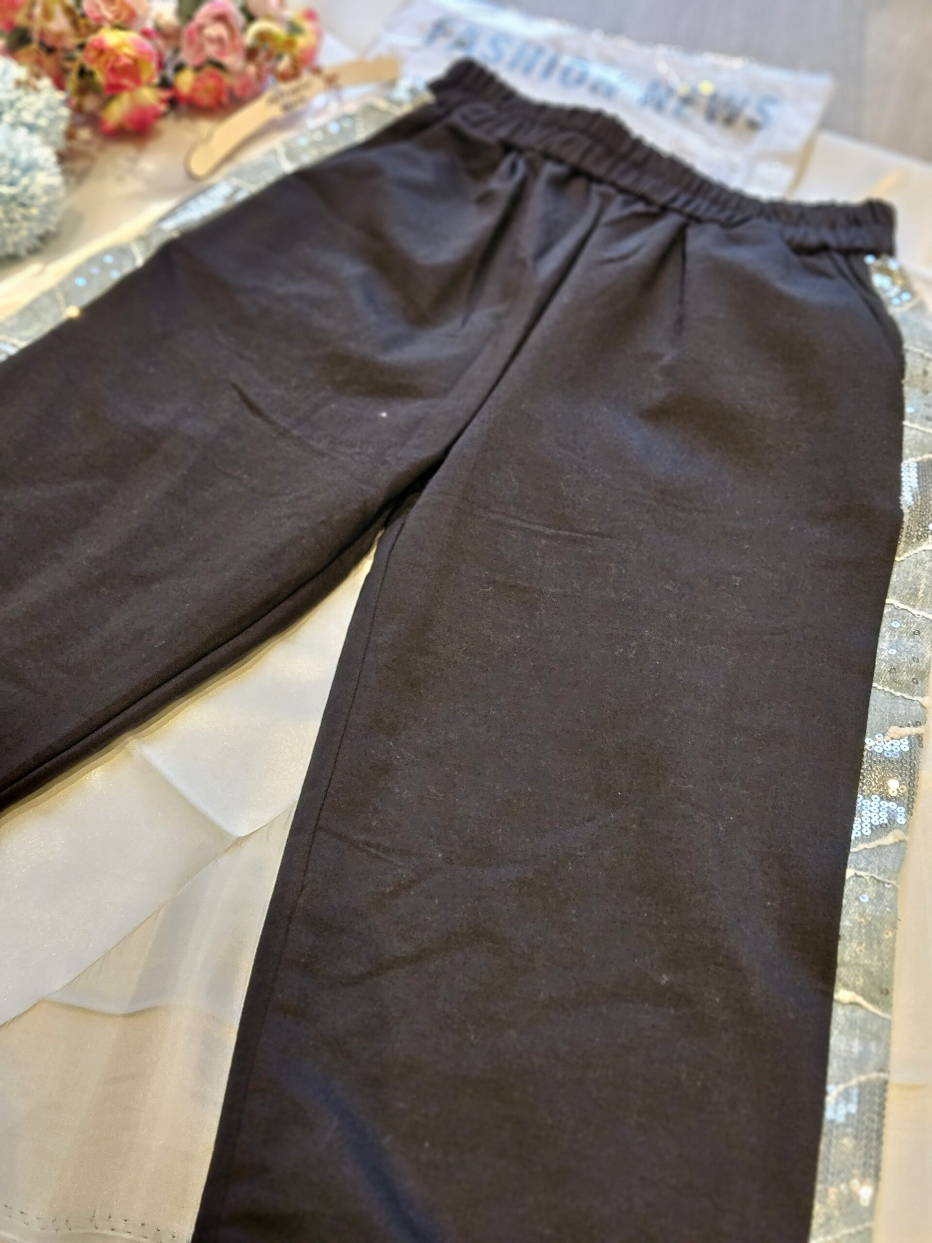 Napisz pierwszą opinię o „Spodnie dziewczęce z kieszeniami i paskiem – czarne”