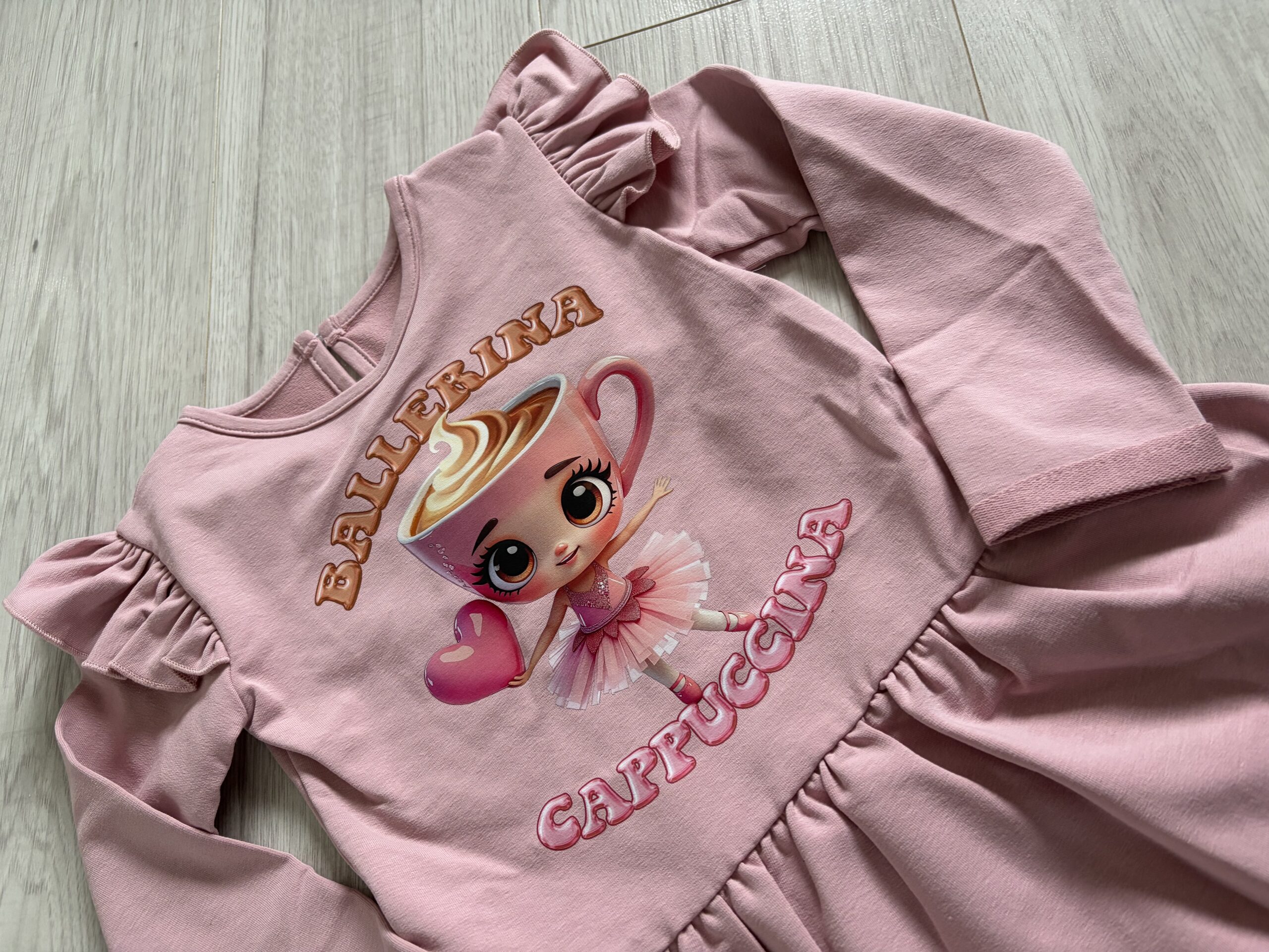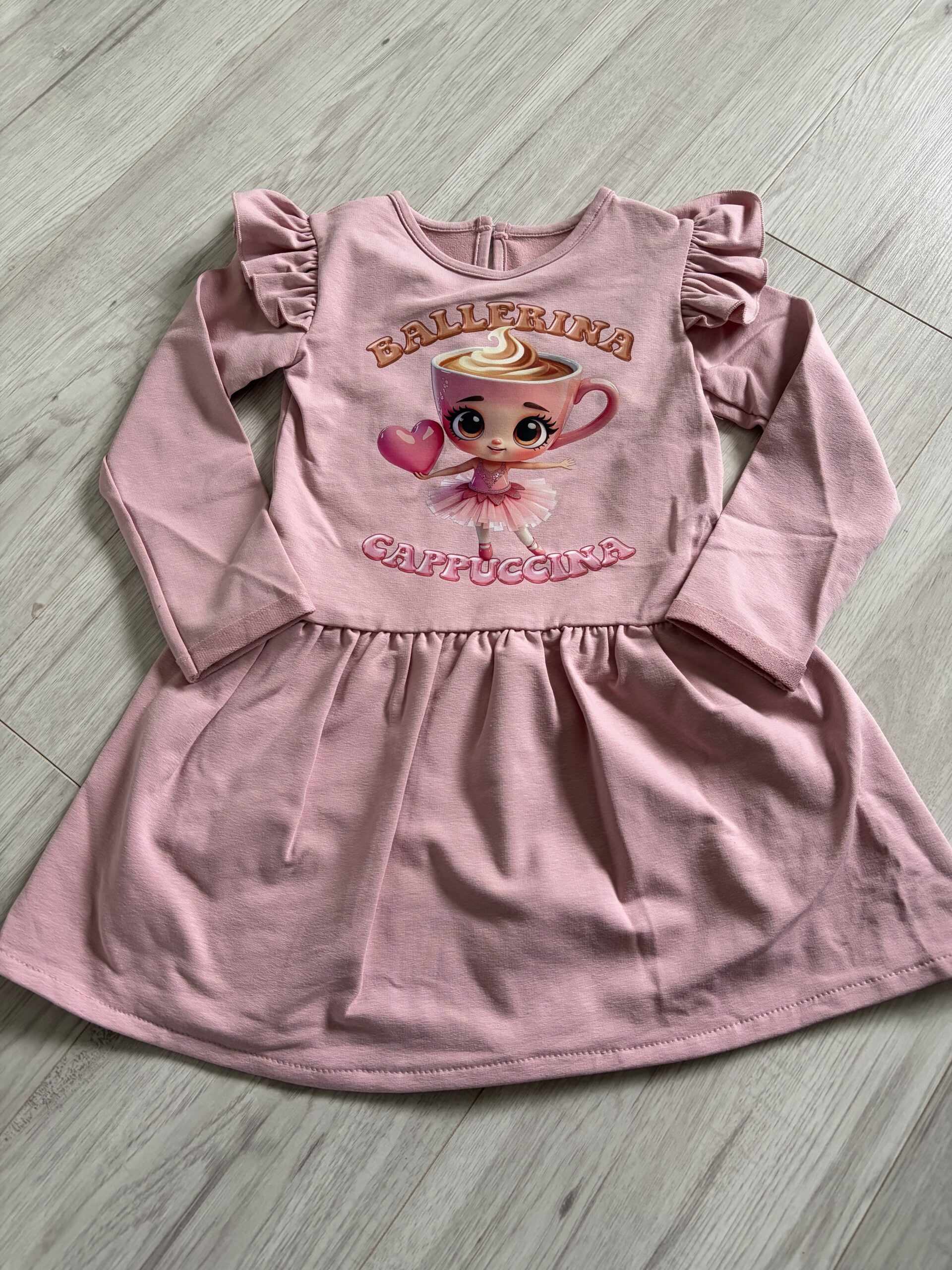 Stylowa sukienka dziewczęca Ballerina Cappuccina w modnym kolorze pudrowego różu.
