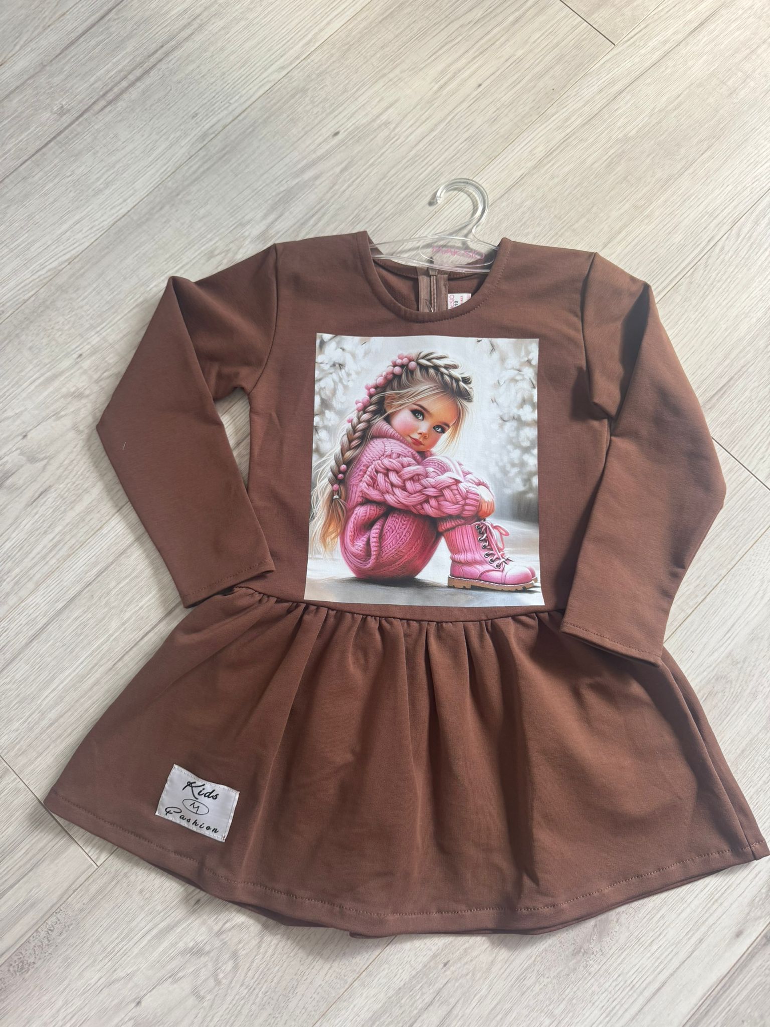 sukienka zapinana na suwak na plecach.Piękna aplikacja lali na przodzie