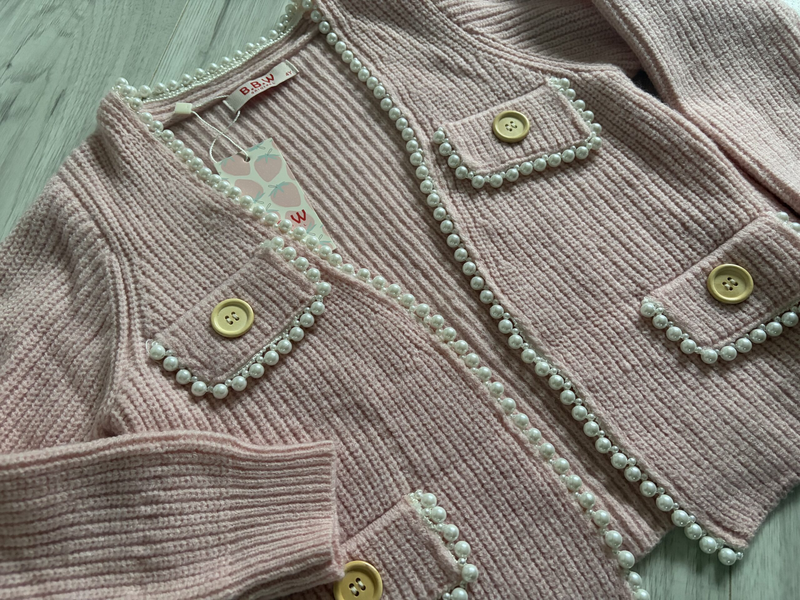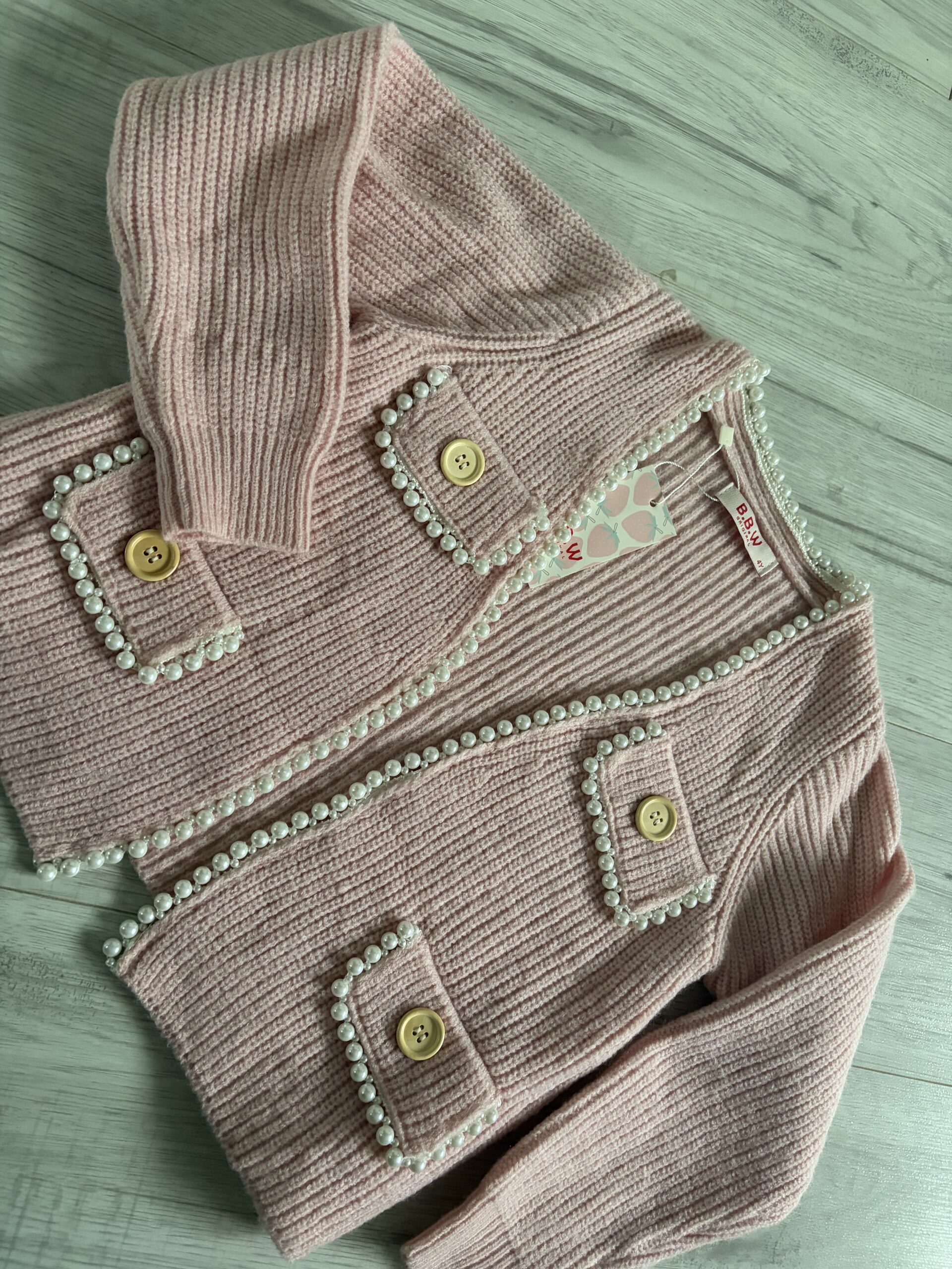 Stylowy sweter dziewczęcy w modnym odcieniu pudrowego różu.