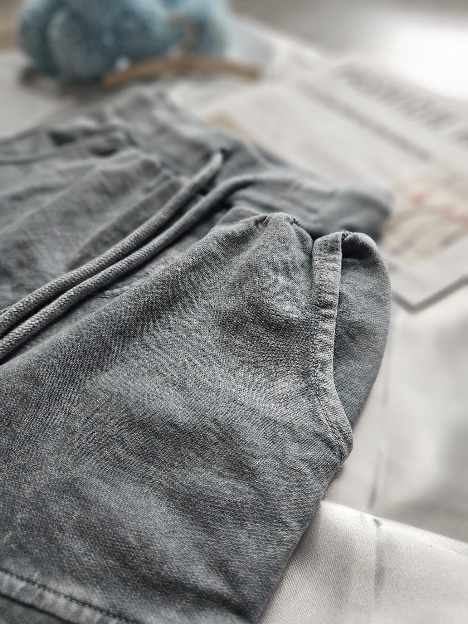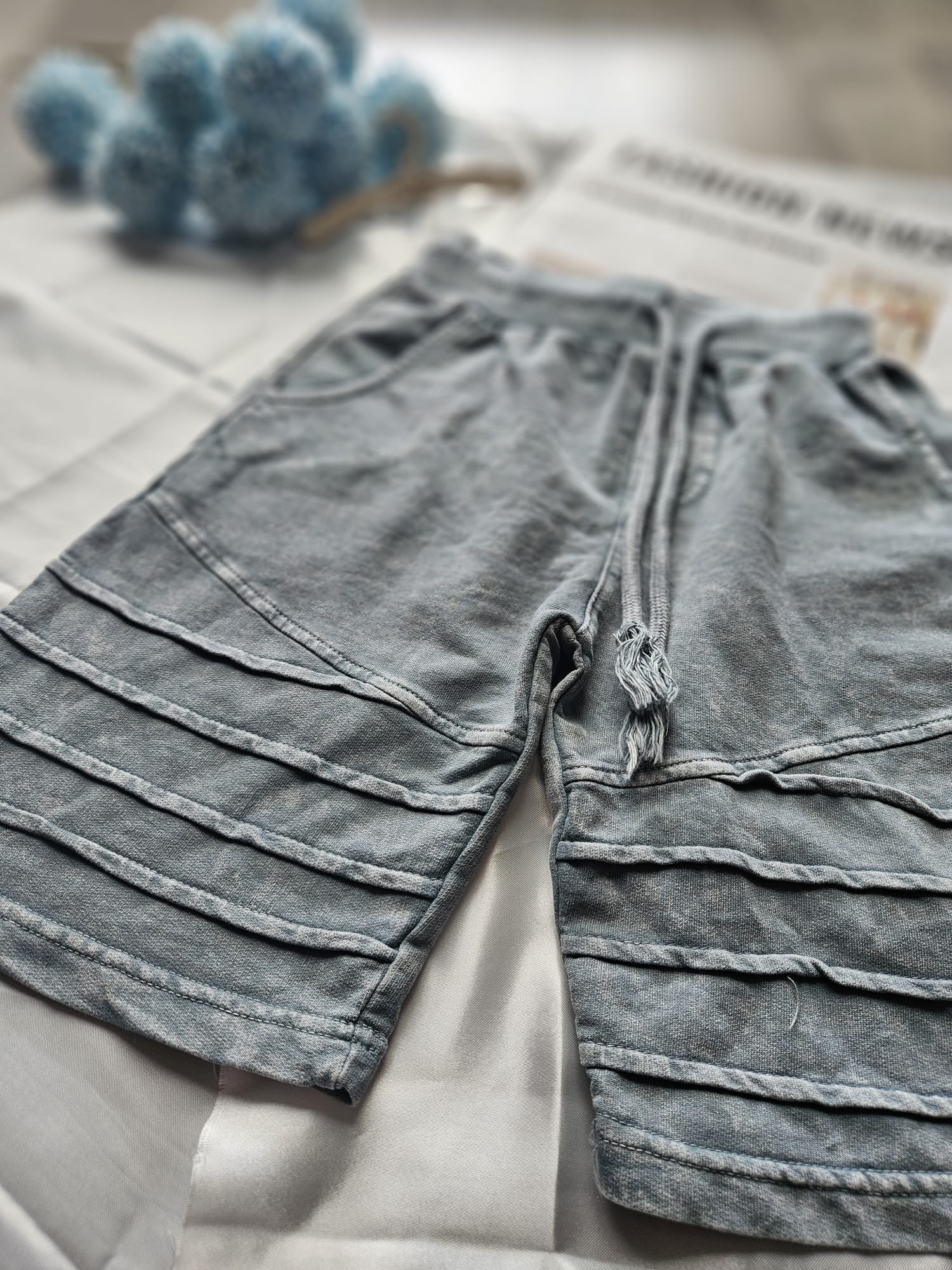 Lekkość, wygoda i modny styl w jednym! Te szaroniebieskie spodenki są idealne na letnie dni pełne zabawy. Naturalny materiał zapewnia komfort, a ponadczasowy design sprawia, że łatwo je łączyć z ulubionymi koszulkami i butami.