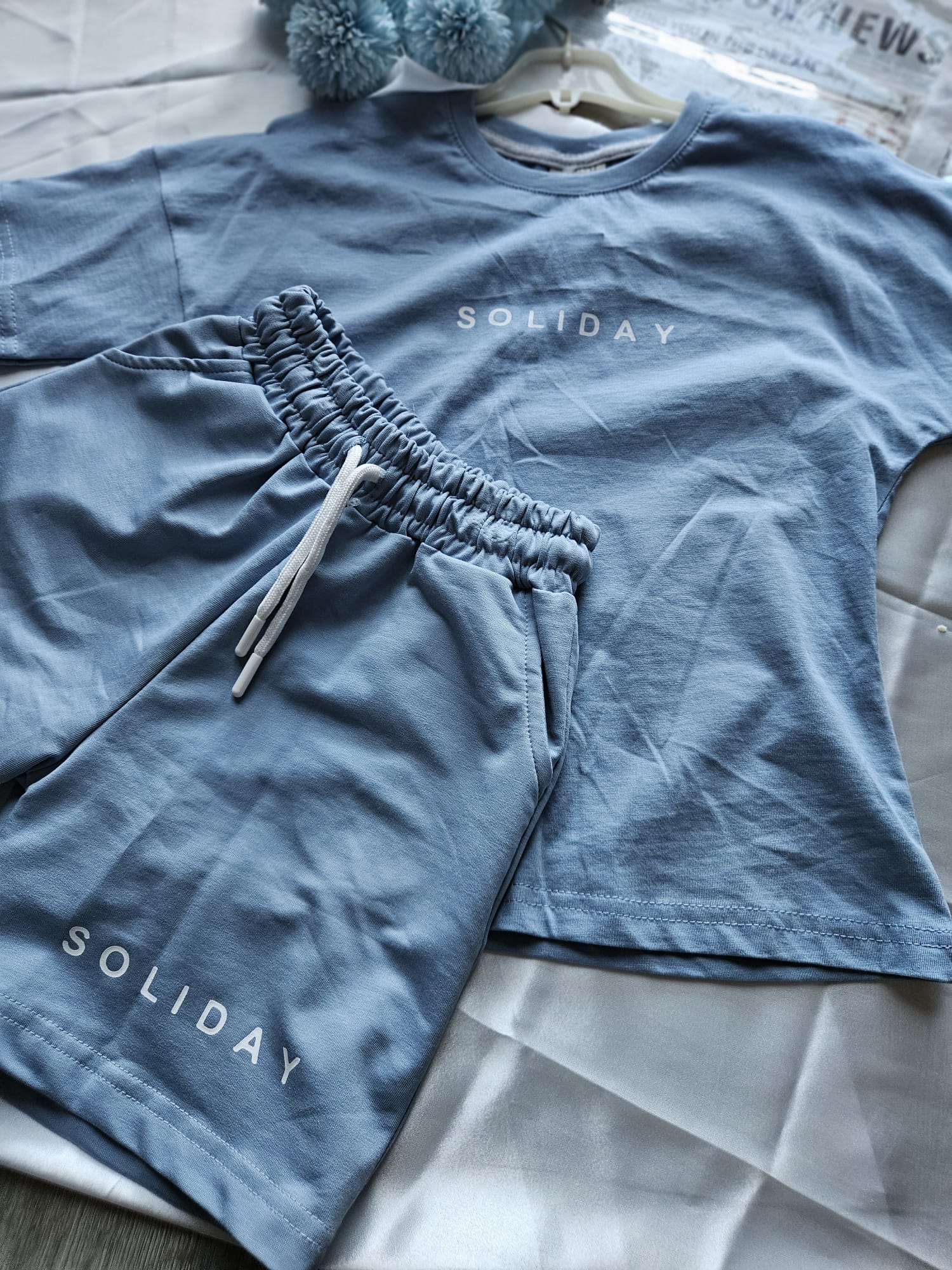 Uniwersalny letni komplet dla małych odkrywców! Niebieski kolorek ,idealny zarówno dla chłopców, jak i dziewczynek, a wygodna koszulka i spodenki zapewniają swobodę ruchów podczas letnich zabaw i przygód na świeżym powietrzu.