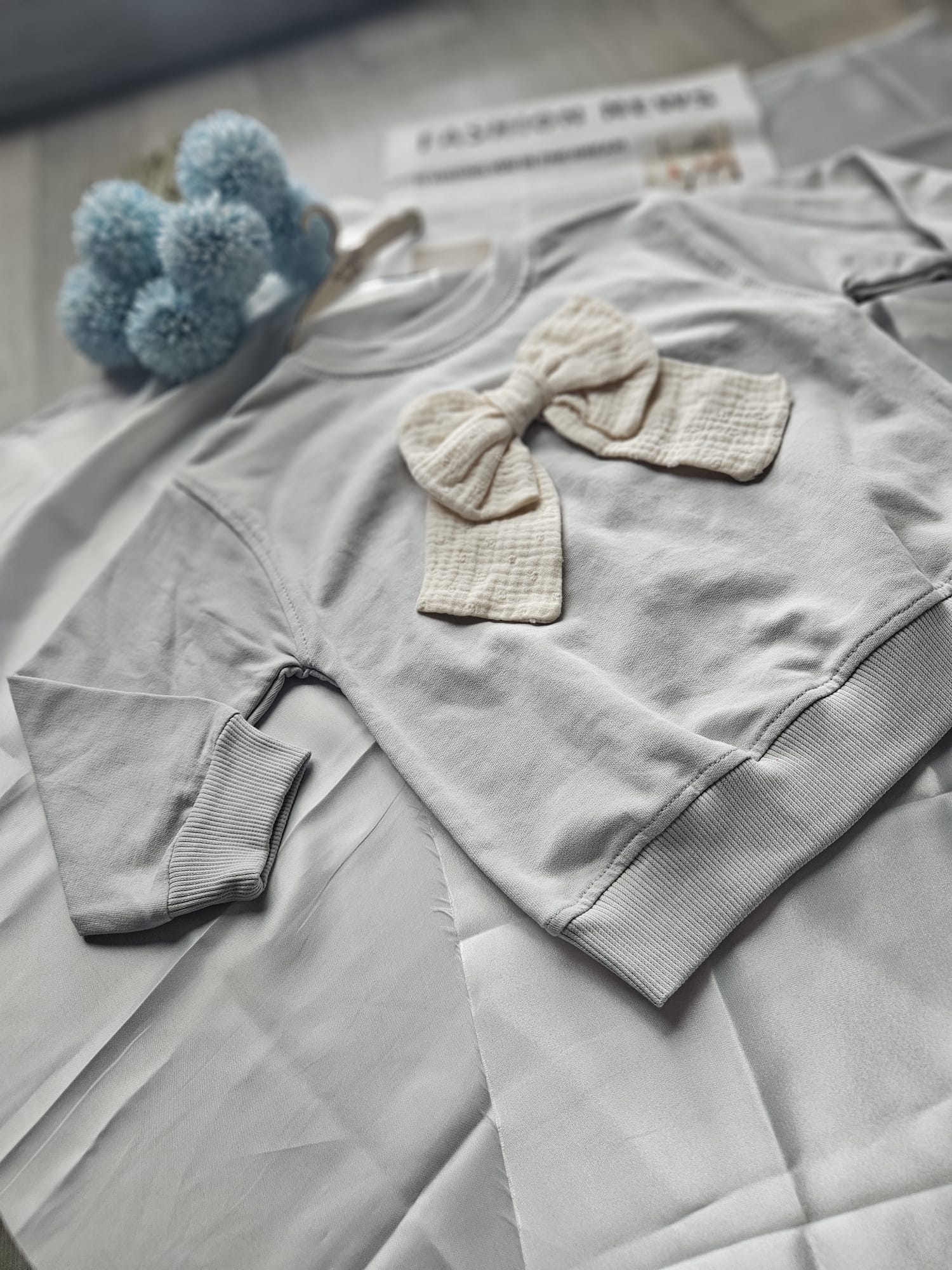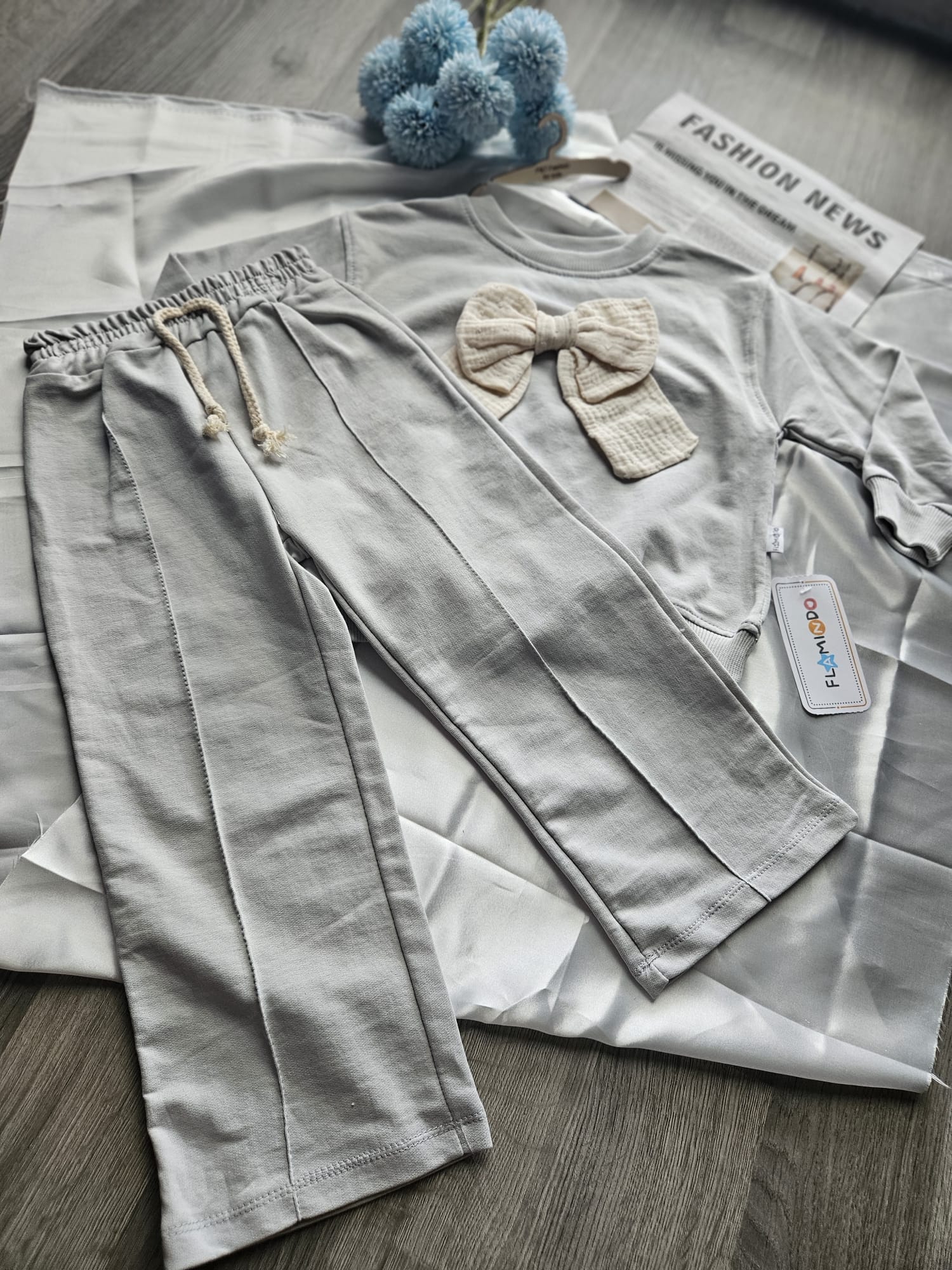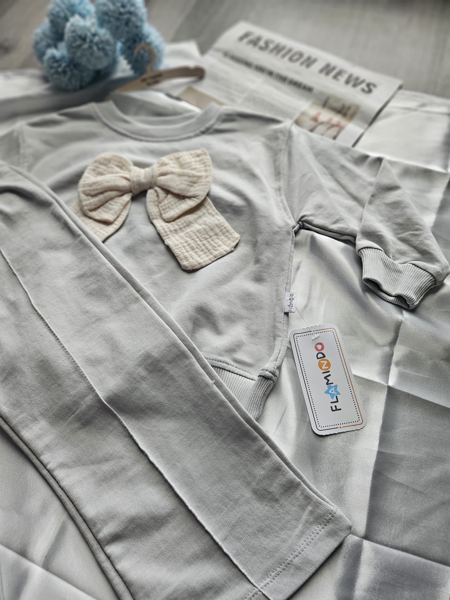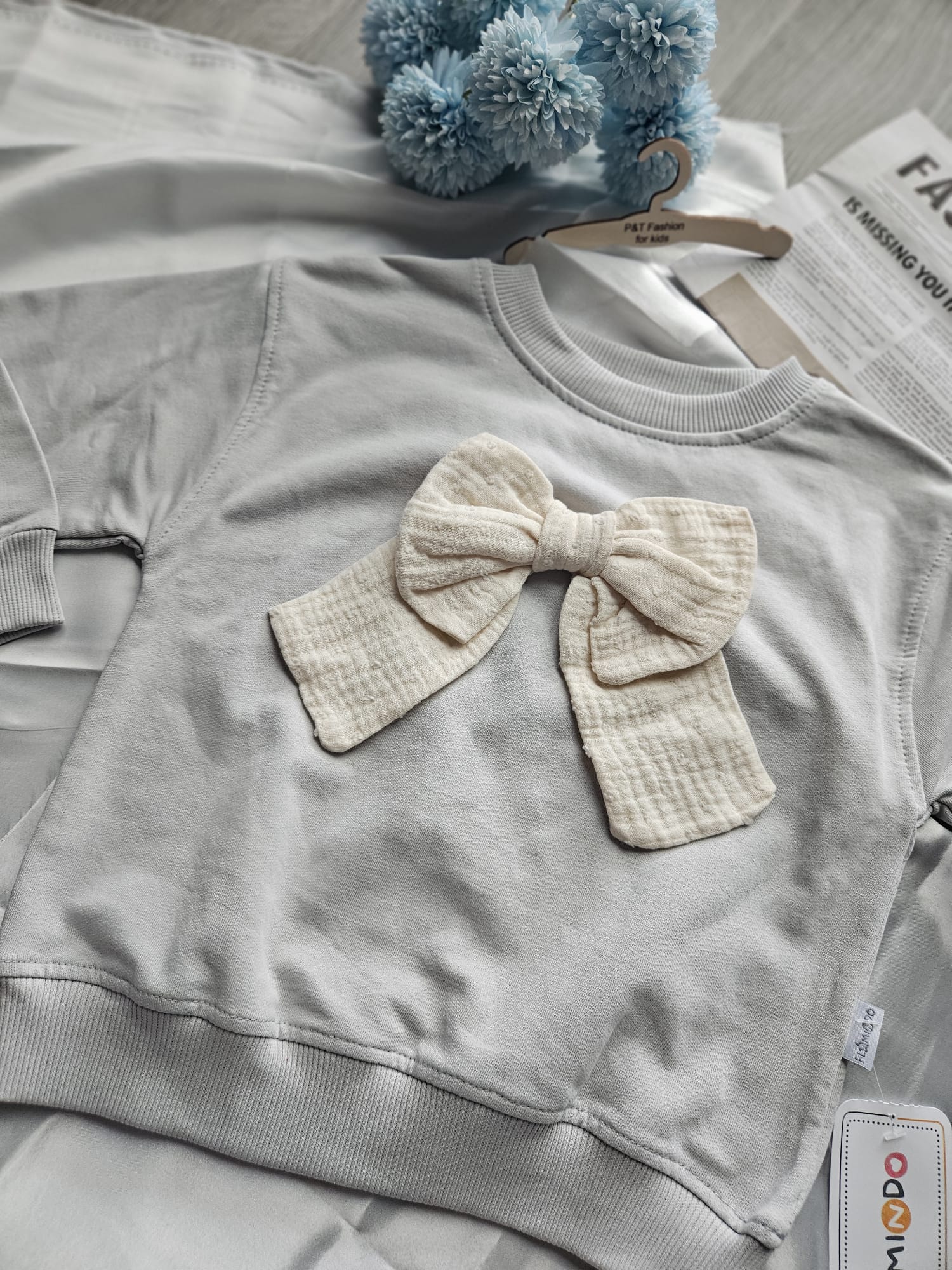 Uroczy dres w kolorze szarym z kokardą na bluzie