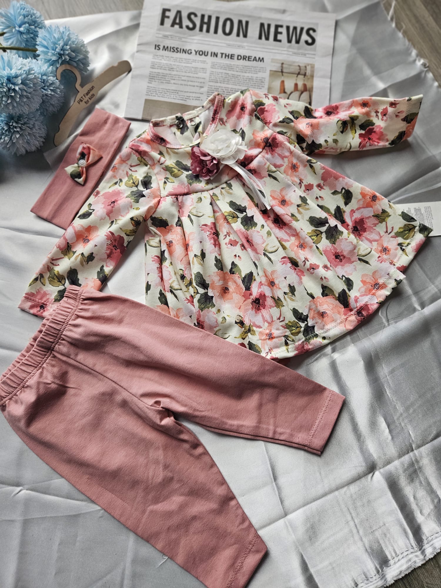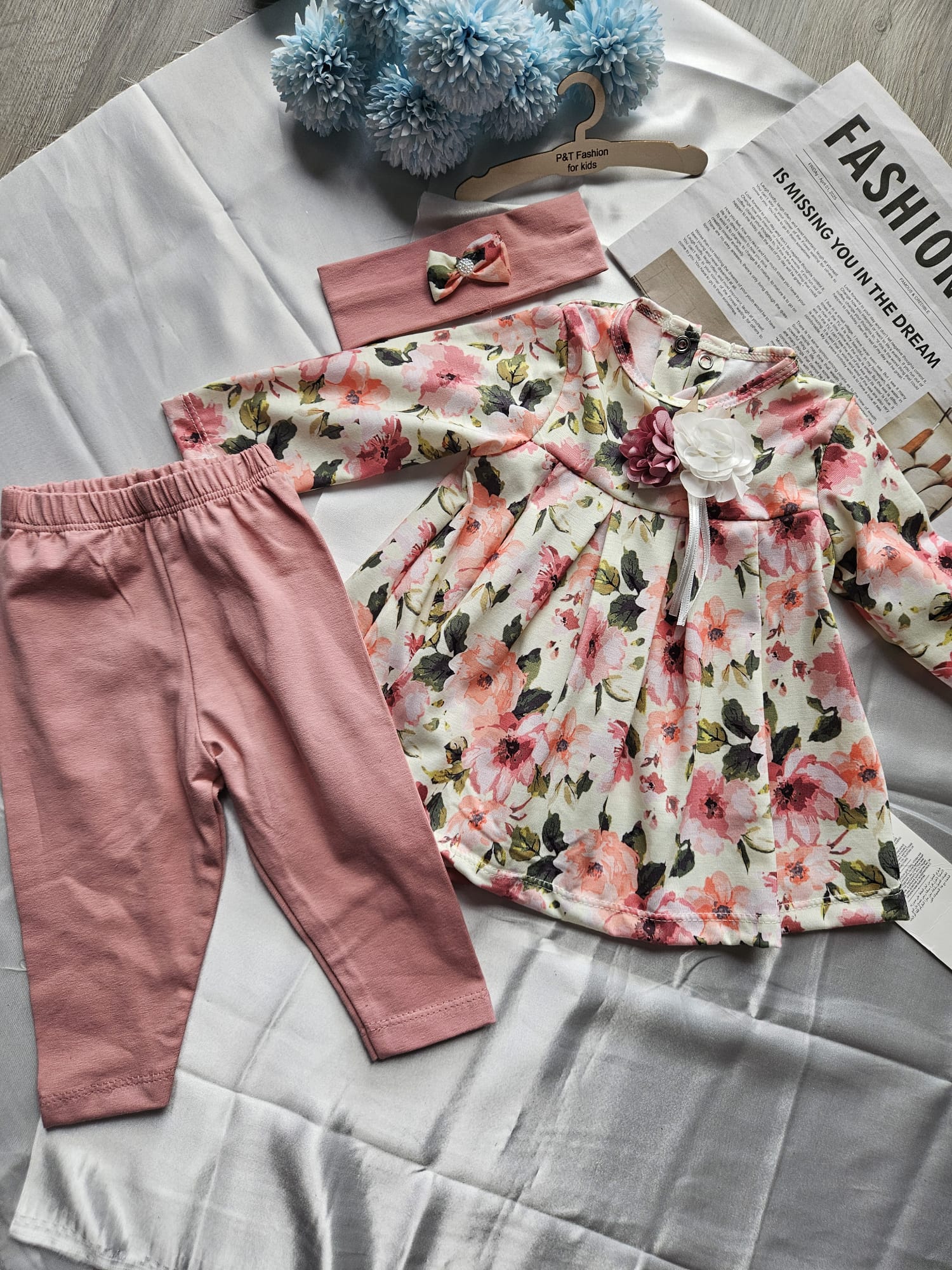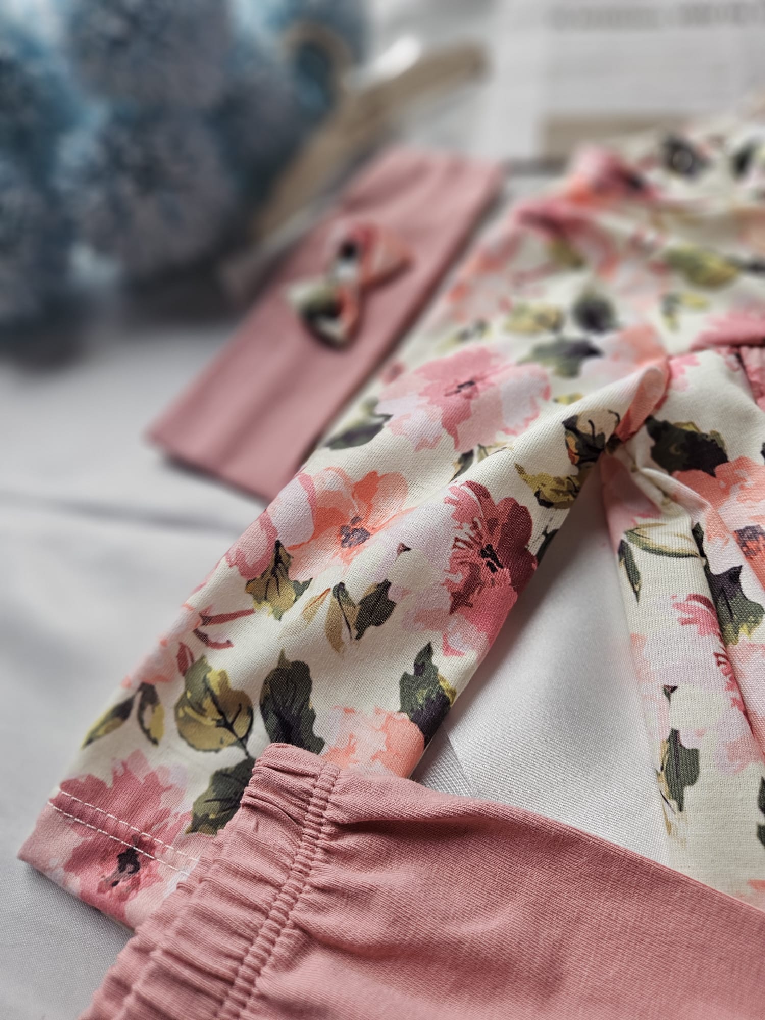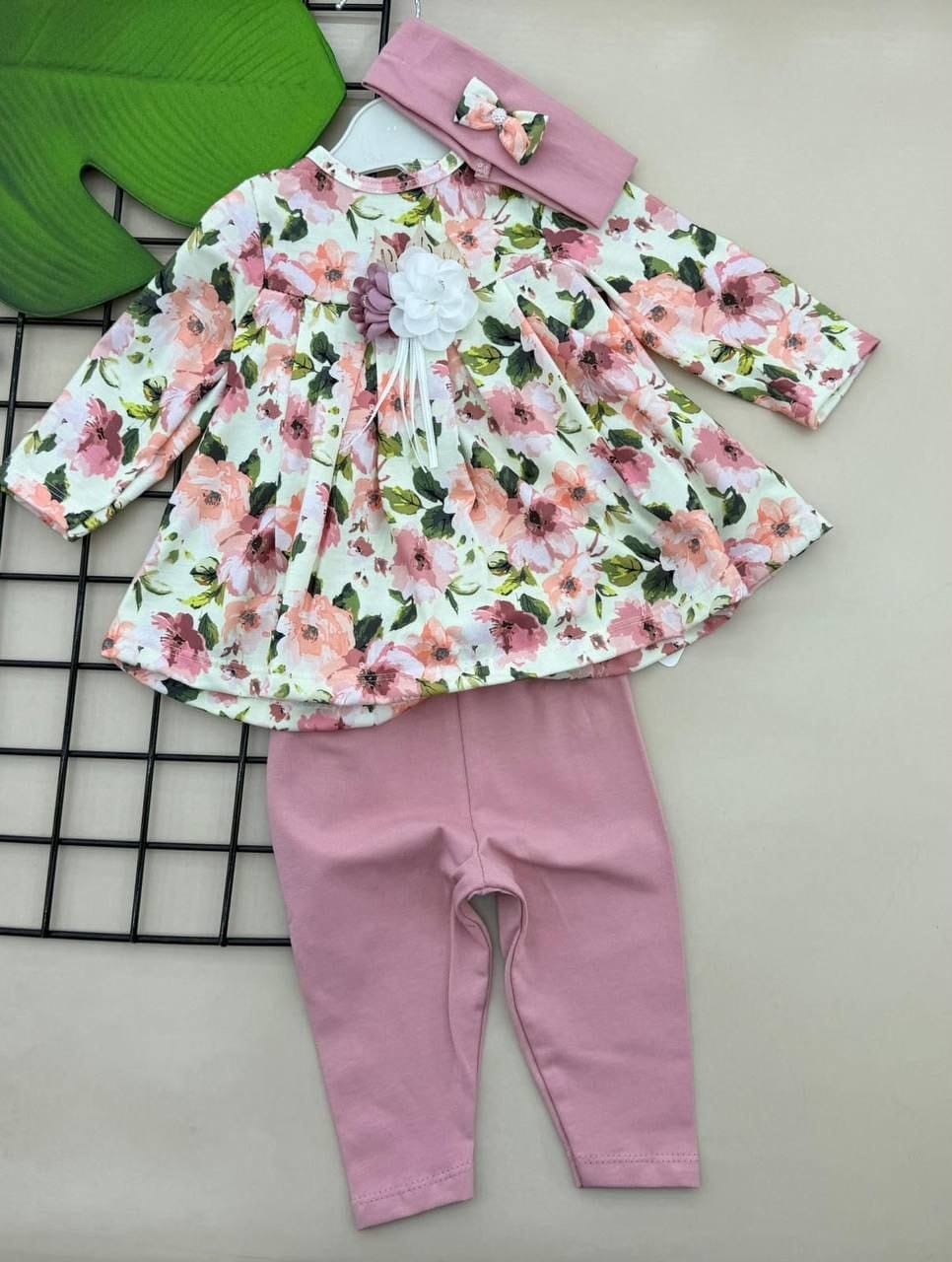 Uroczy komplet dla małej dziewczynki składający się z tuniki w kwiatki, różowych legginsów oraz dopasowanej opaski. Delikatny, dziewczęcy wzór i przyjemny w dotyku materiał zapewniają komfort noszenia przez cały dzień. Idealny zestaw na spacer, spotkanie rodzinne lub codzienne stylizacje. 🌸składający się z tuniki w kwiatki, różowych legginsów oraz dopasowanej opaski. Delikatny, dziewczęcy wzór i przyjemny w dotyku materiał zapewniają komfort noszenia przez cały dzień. Idealny zestaw na spacer, spotkanie rodzinne lub codzienne stylizacje. 🌸